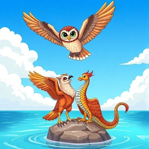 하지만 가루다는 혼자가 아닌 세상을 지키기 위해, 하늘 아래 다른 존재들과도 조화를 이루어야 한다는 것을 알고 있었어요.
