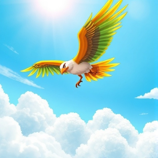 오늘도 가루다는 하늘을 순찰하며, 평화를 위해 경계를 살피고 있었답니다.