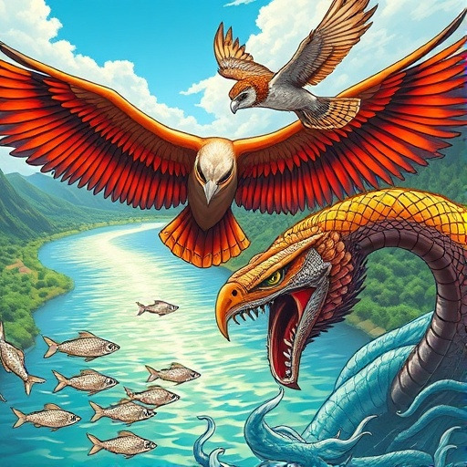 서로를 이해하지 못한 채, 하늘과 물 속에서 치열한 싸움이 벌어졌어요.