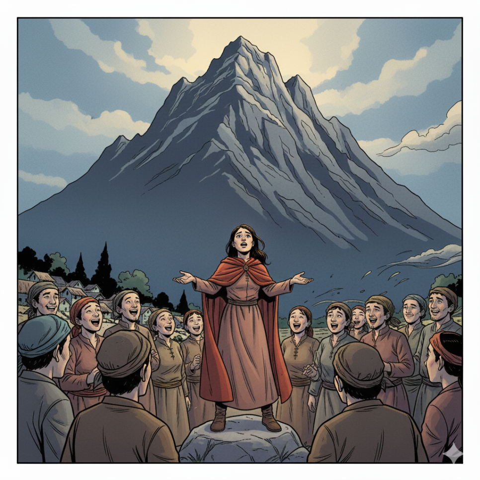 아주 오래전, 이탈리아 남쪽에 햇빛이 잘 들지 않는 작은 마을이 있었어요. 마을 앞에는 거대한 돌산이 떡 하니 버티고 서 있었지요. 산은 마치 마을을 지켜주는 성벽처럼 보였지만, 사실은 사람들의 삶을 가로막고 있었어요. 해가 뜨면 산이 먼저 빛을 가로채 밭은 늘 그늘졌고, 아이들은 산 너머로 가려면 하루를 꼬박 돌아가야 했지요. 사람들은 “원래 그런 거야”라며 산을 원망하면서도 아무것도 바꾸려 하지 않았어요. 돌산은 늘 그 자리에 있었고, 마을의 한숨도 늘 그 자리에 있었으니까요. 그러던 어느 날, 사람들 눈에 잘 띄지 않던 한 여인이 매일같이 산을 바라보며 조용히 노래하는 모습이 보이기 시작했어요.