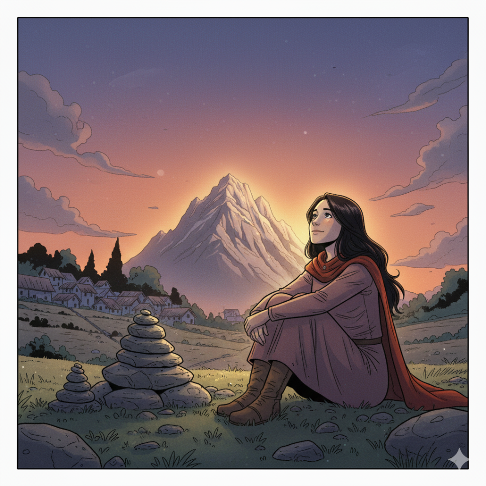 며칠이 지나자, 산의 모습이 달라 보이기 시작했어요. 바람이 예전보다 더 깊이 불었고, 햇빛이 조금 더 길게 들어왔지요. 사람들은 “산이 숨 쉬는 것 같아”라고 말했어요. 루치아는 미소 지으며 고개를 끄덕였어요. “산도 우리 말을 듣고 있어요.” 그 말에 어른 하나가 처음으로 돌을 들어 올렸어요. 그 순간, 산은 더 이상 혼자만의 존재가 아니게 되었지요.