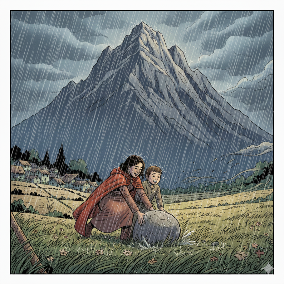 어느 날, 폭우가 쏟아졌어요. 사람들은 “이제 포기하겠지”라고 말했어요. 하지만 루치아는 비를 맞으며 산으로 향했지요. 그날은 유난히 돌이 잘 떨어졌어요. 비에 젖은 흙이 느슨해지며 작은 돌들이 굴러내렸거든요. 루치아는 젖은 손으로 돌을 옮기며 속삭였어요. “괜찮아, 천천히 해도 돼.” 그때 우르릉 소리와 함께 산자락의 흙이 살짝 내려앉았어요. 아주 작은 변화였지만, 분명 어제와는 달랐지요. 비는 기적처럼 모든 것을 씻어내고, 사람들의 마음도 조금씩 바꾸어 놓았어요.
