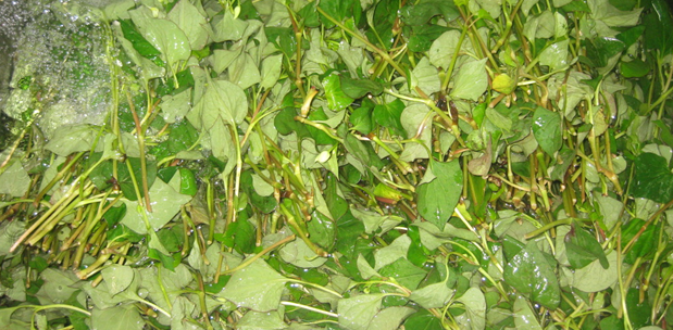 냅니다. 신선한 잎이나 뿌리를 씻어 잘게 썬 다음 은박지에 싸서 불로 익힌 다음 짓