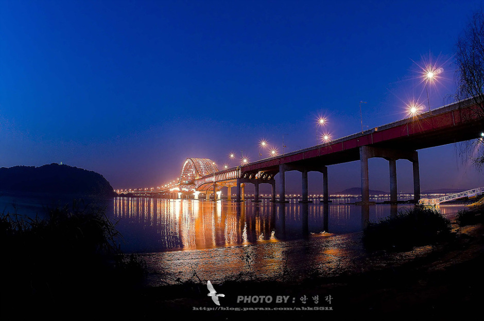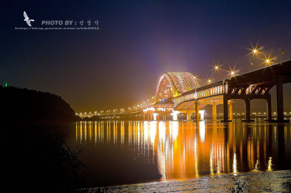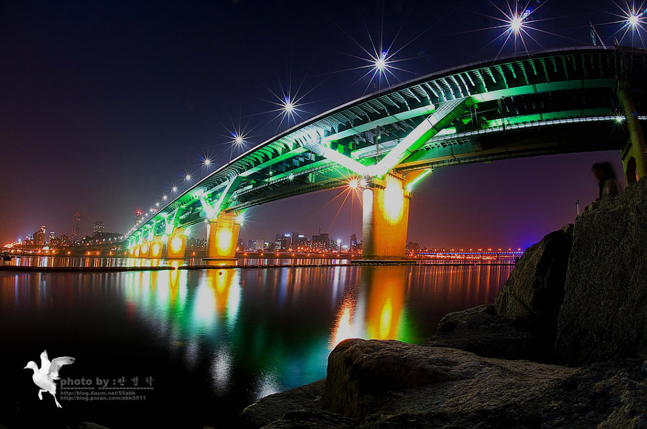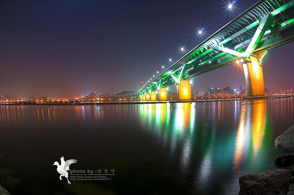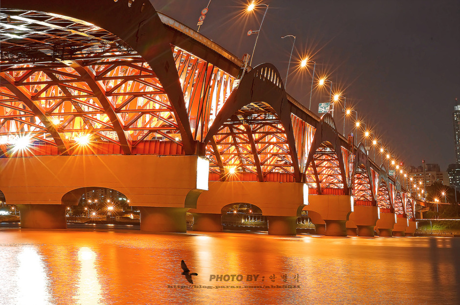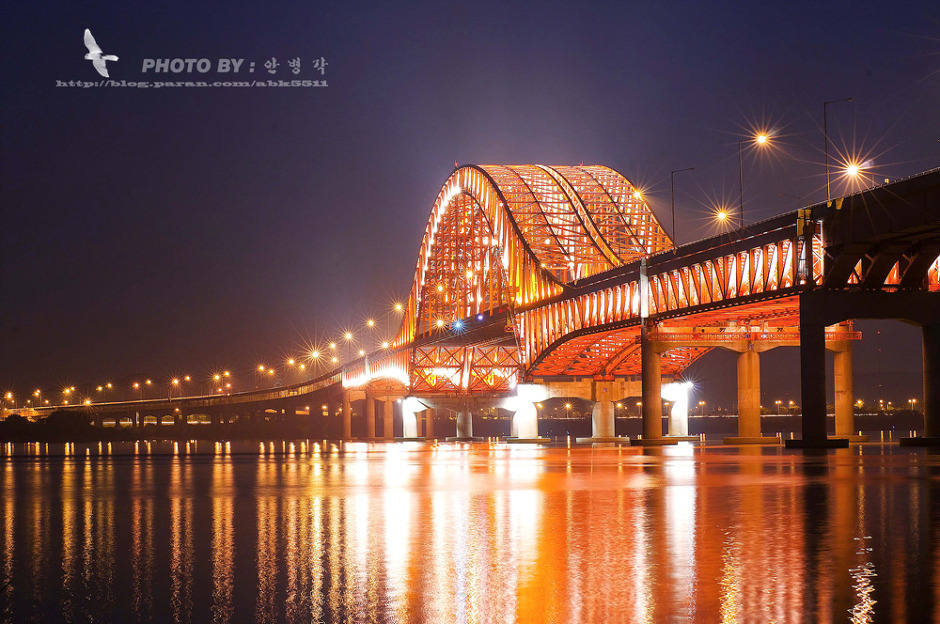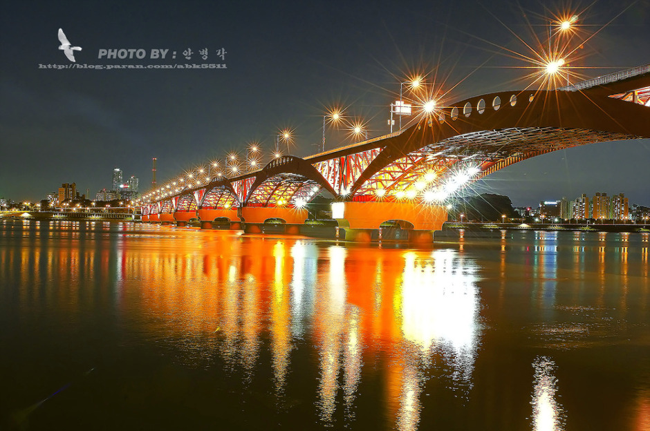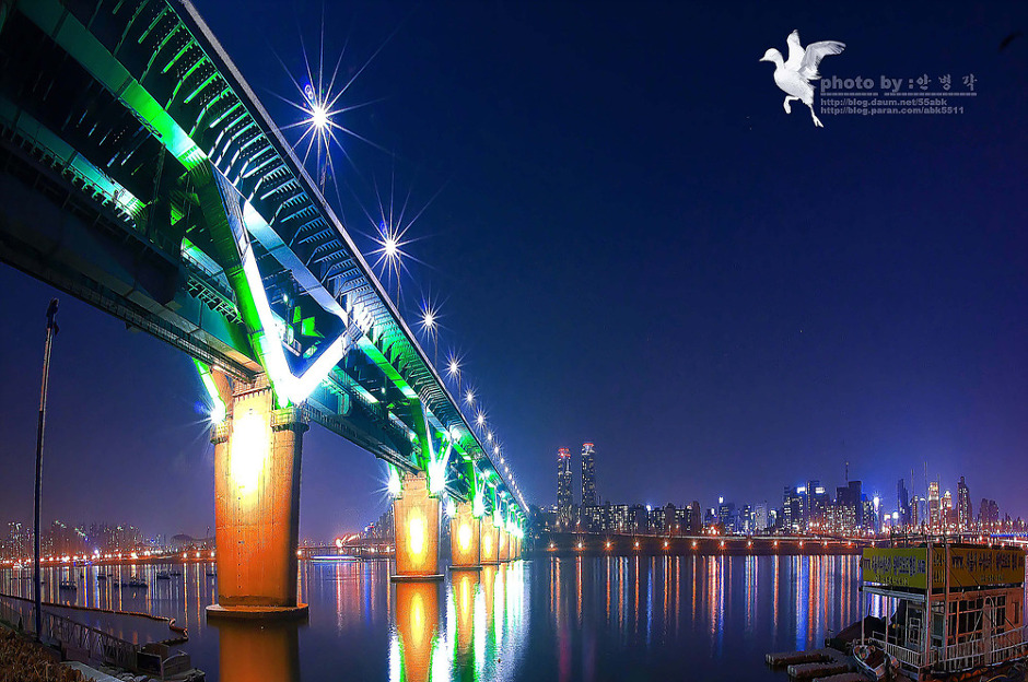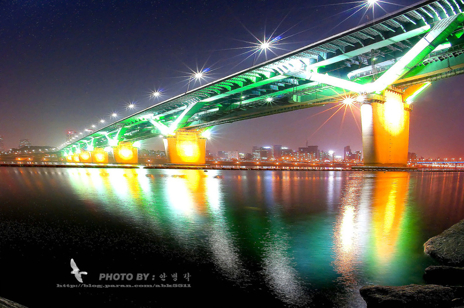 수많은 빌딩의 불빛과 유유히 흐르고있는 한강을 따라 내려가다 보면 멋진 조명을 켜논 다리가