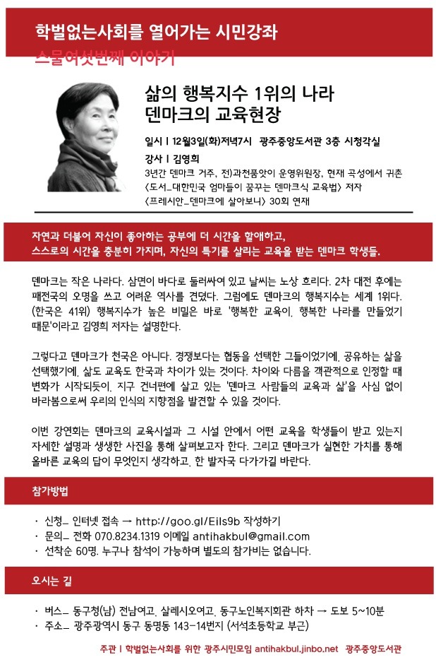 · 주관 : 학벌없는사회를 위한 광주시민모임, 광주중앙도서관