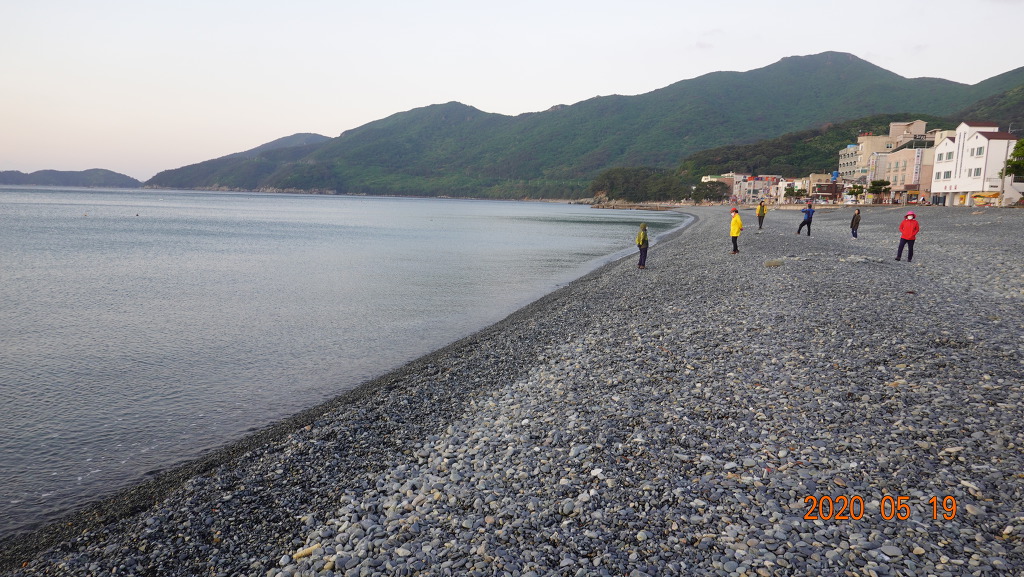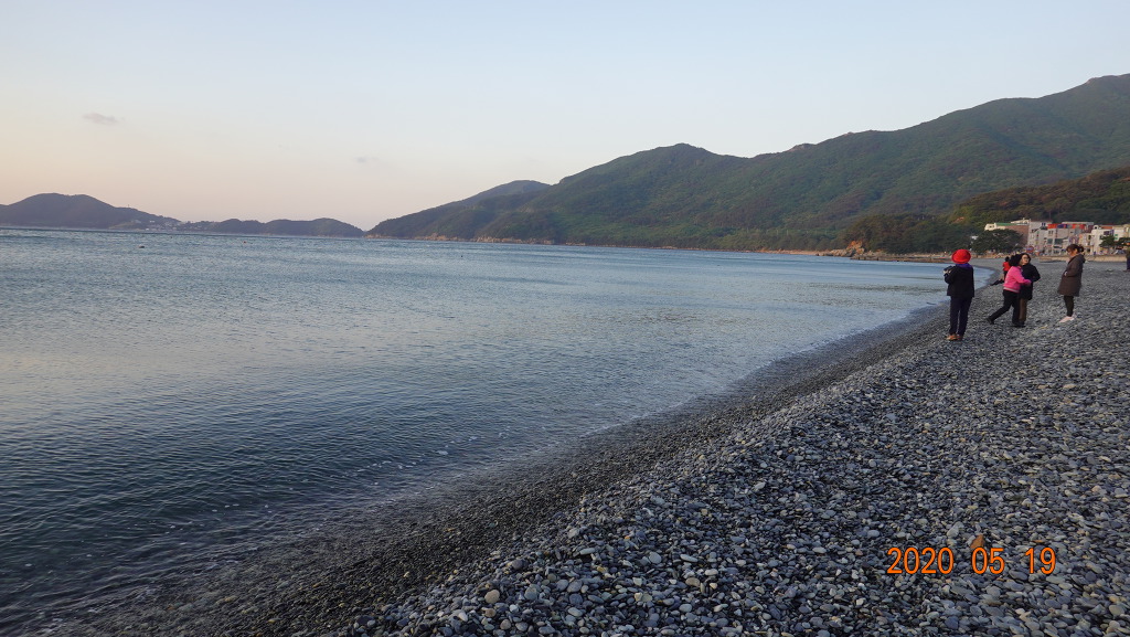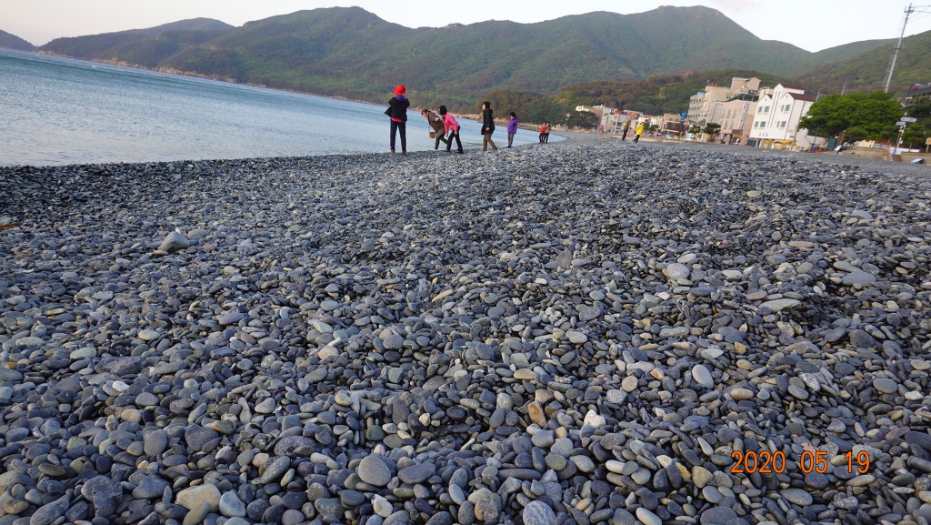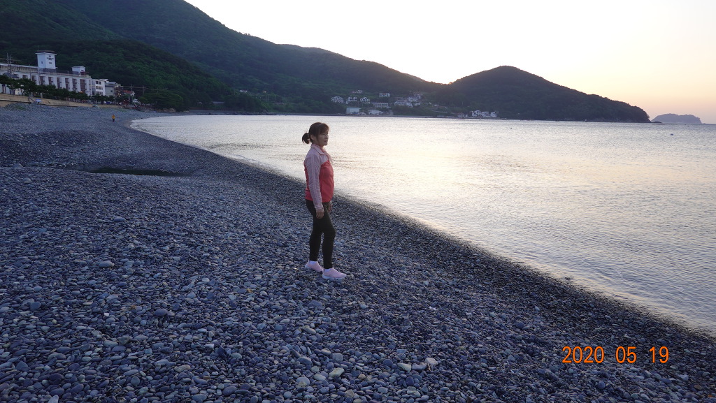 몽돌 해변에에 도착하여 2시간동안 트레킹하고 아침 식사때 손씻다가 잠바 윗주머니에서 카메라가 세맨기로 바져버렸다