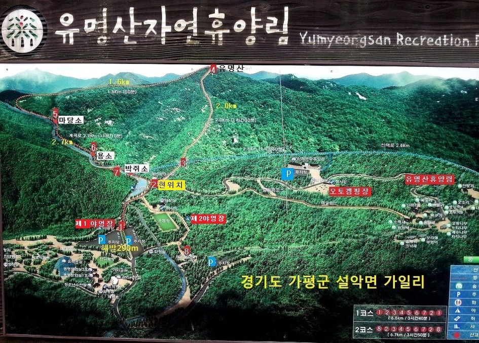 ㅇ가일리 휴양림주차장 - 매표소-북능 - 정상 - 유명계곡 - 주차장(8Km, 3시간30분)