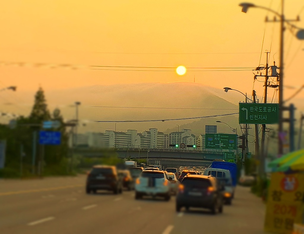 집으로 귀가중 도로에서 바라본 계양산입니다.