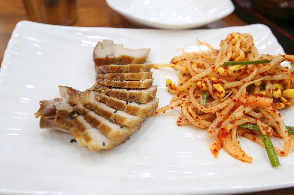찬반은 빨간 김치와 백김치가 정갈하게 차려져 나왔다. 찬반을 개인별로 따로 내준다. 소박하지만 가치를 만들어주는 것 같다.