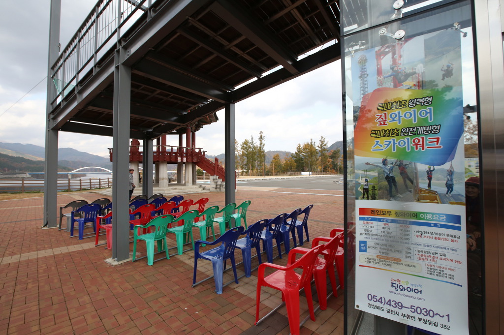 면적 342만6천㎡인 김천부항댐은 수면과 가장자리를 활용한 대표적인 관광시설이다. 전국 최고 높이(93m)의 레인보 집와이어, 국내 최초의 완전 개방형 스카이 워크(높이 85m), 국내에서 제일 긴 출렁다리(256m) 등은 이른바 ‘高(고), 初(초), 장(長)’ 3종 세트를 갖추고 있다. 고초장 3종 세트는 주말은 물론 평일에도 수많은 관광객을 모으는 등 김천부항댐 관광권역의 유인 상품 역할을 하고 있다.