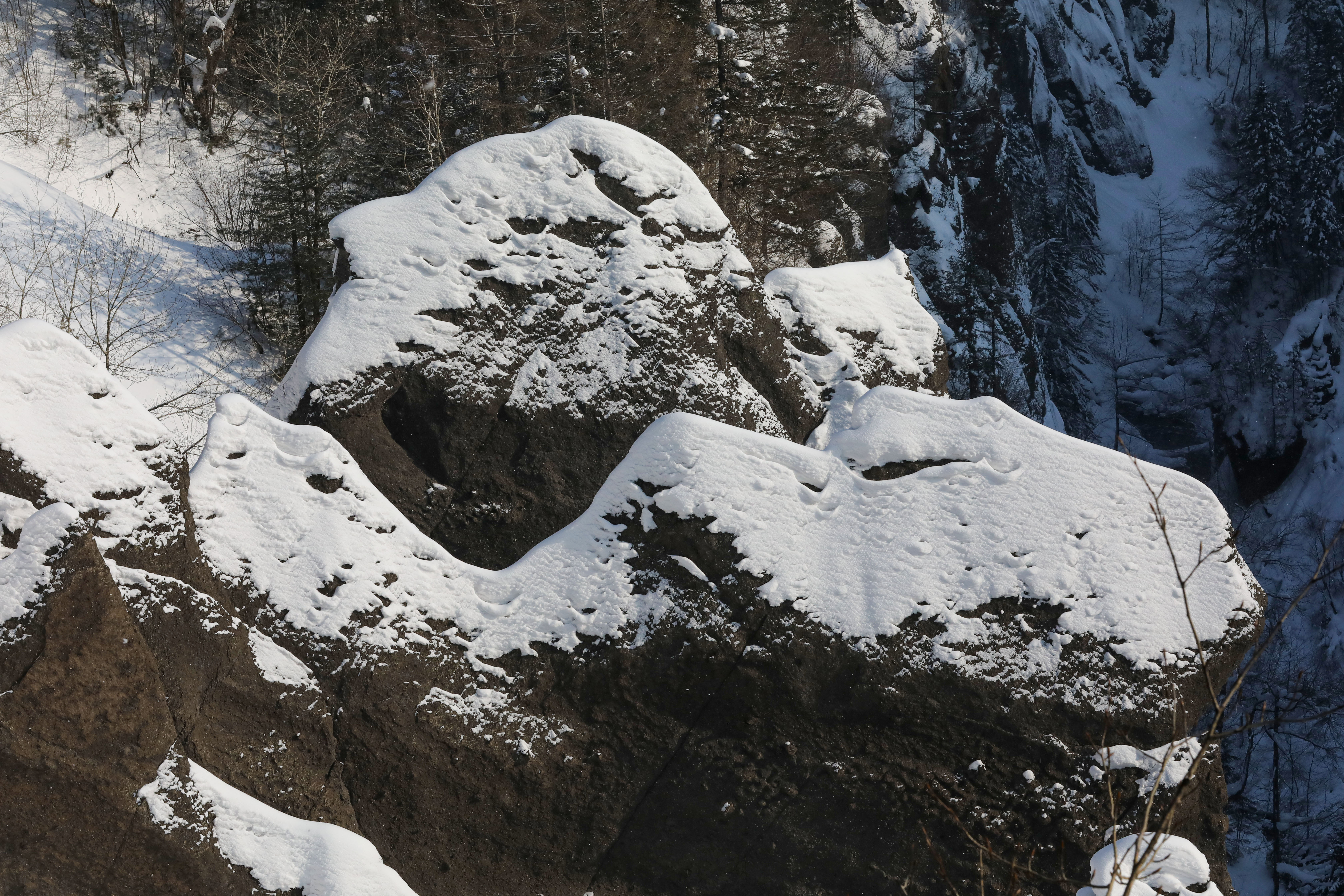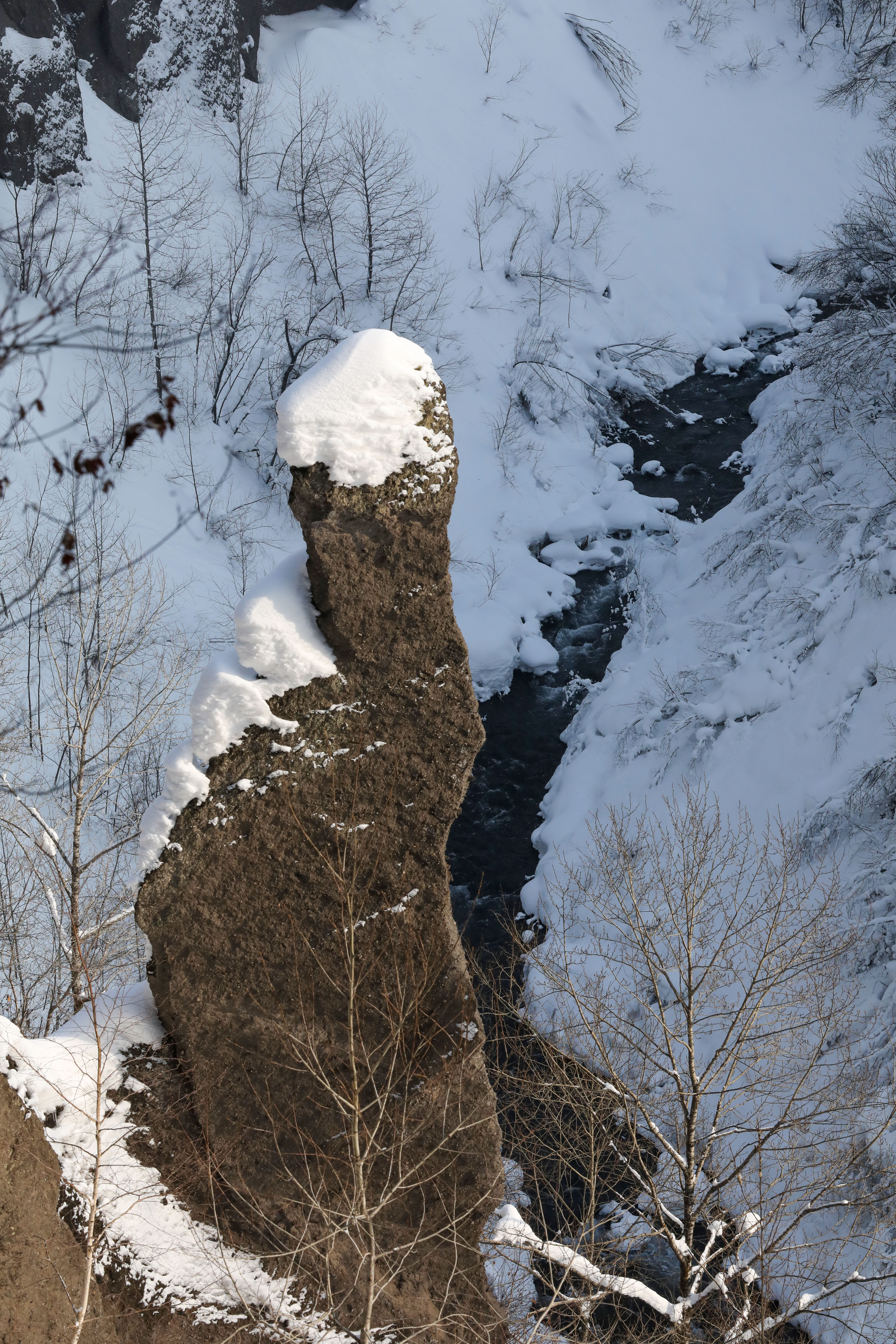 검은 바위위로 삿갓을 쒸어 놓인것처럼 흰색으로 뭉쳐진 바위숲이 아주 장관입니다.