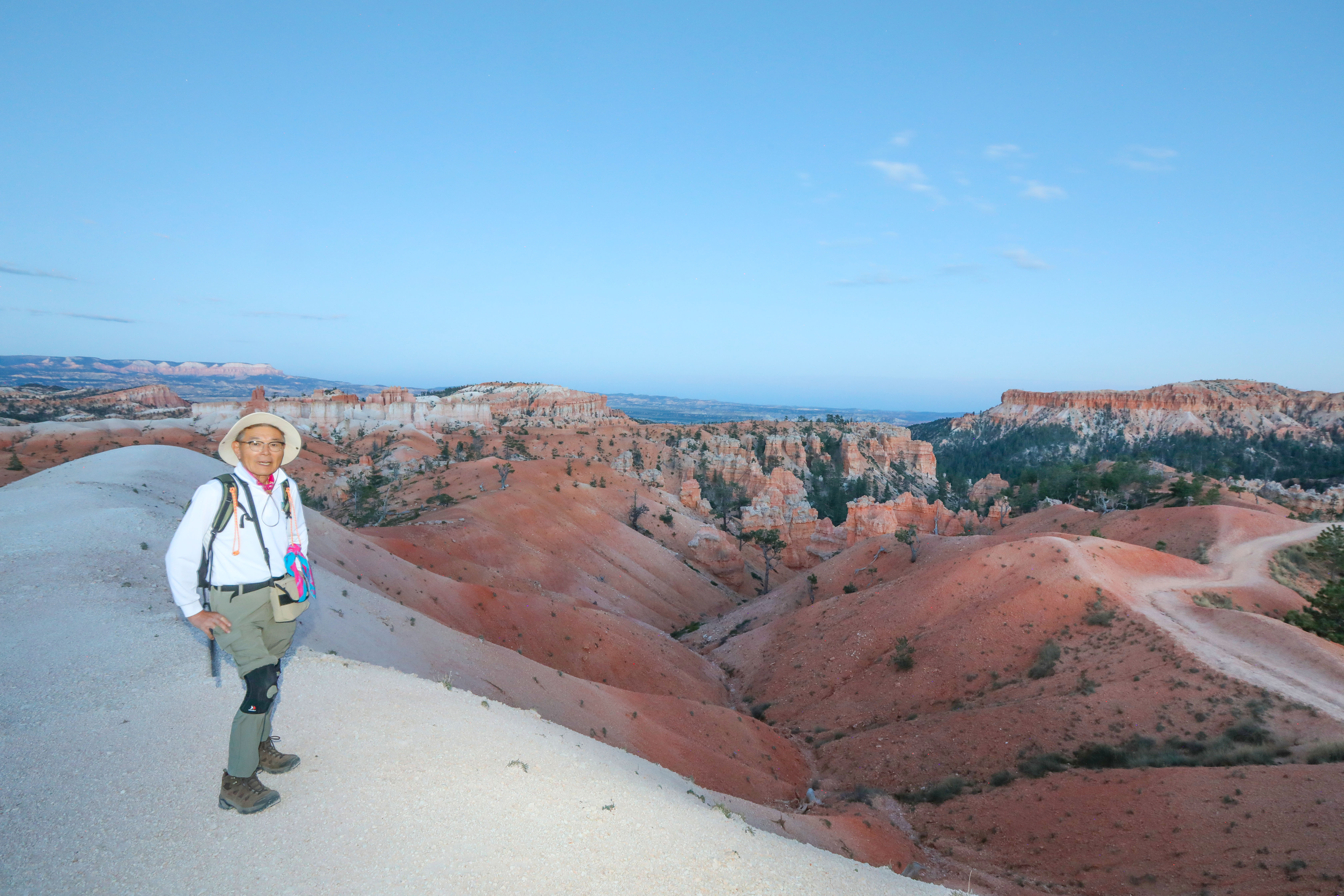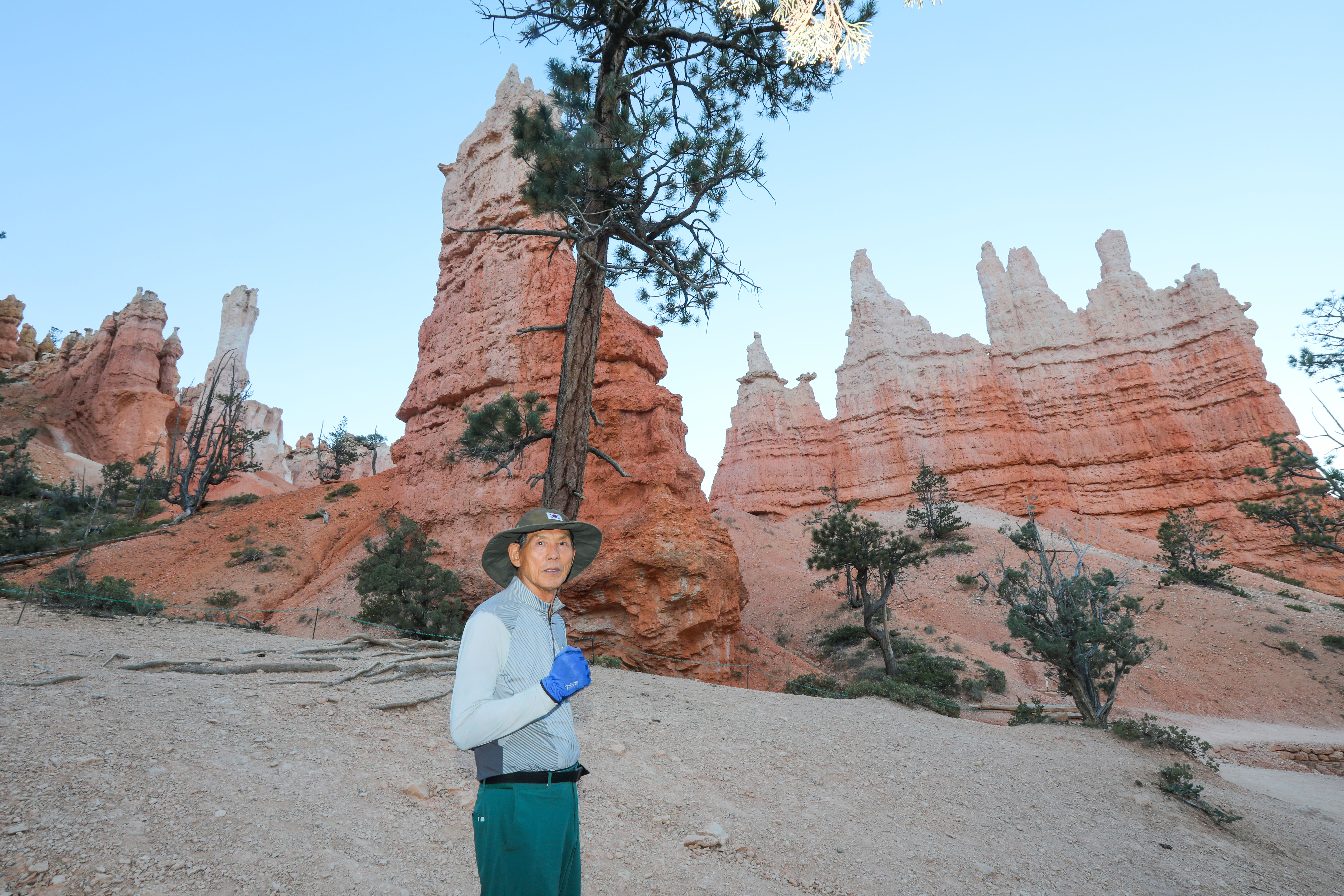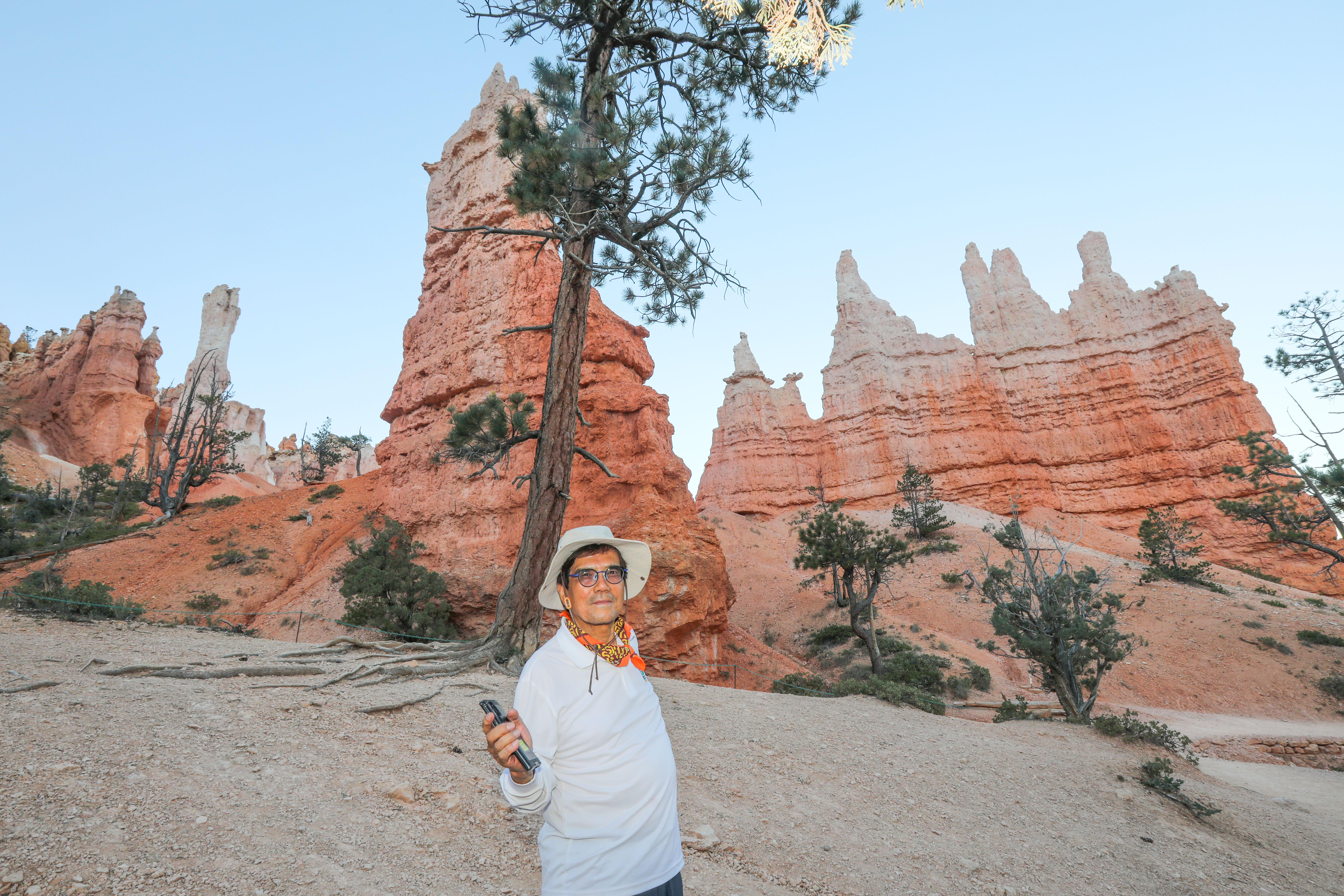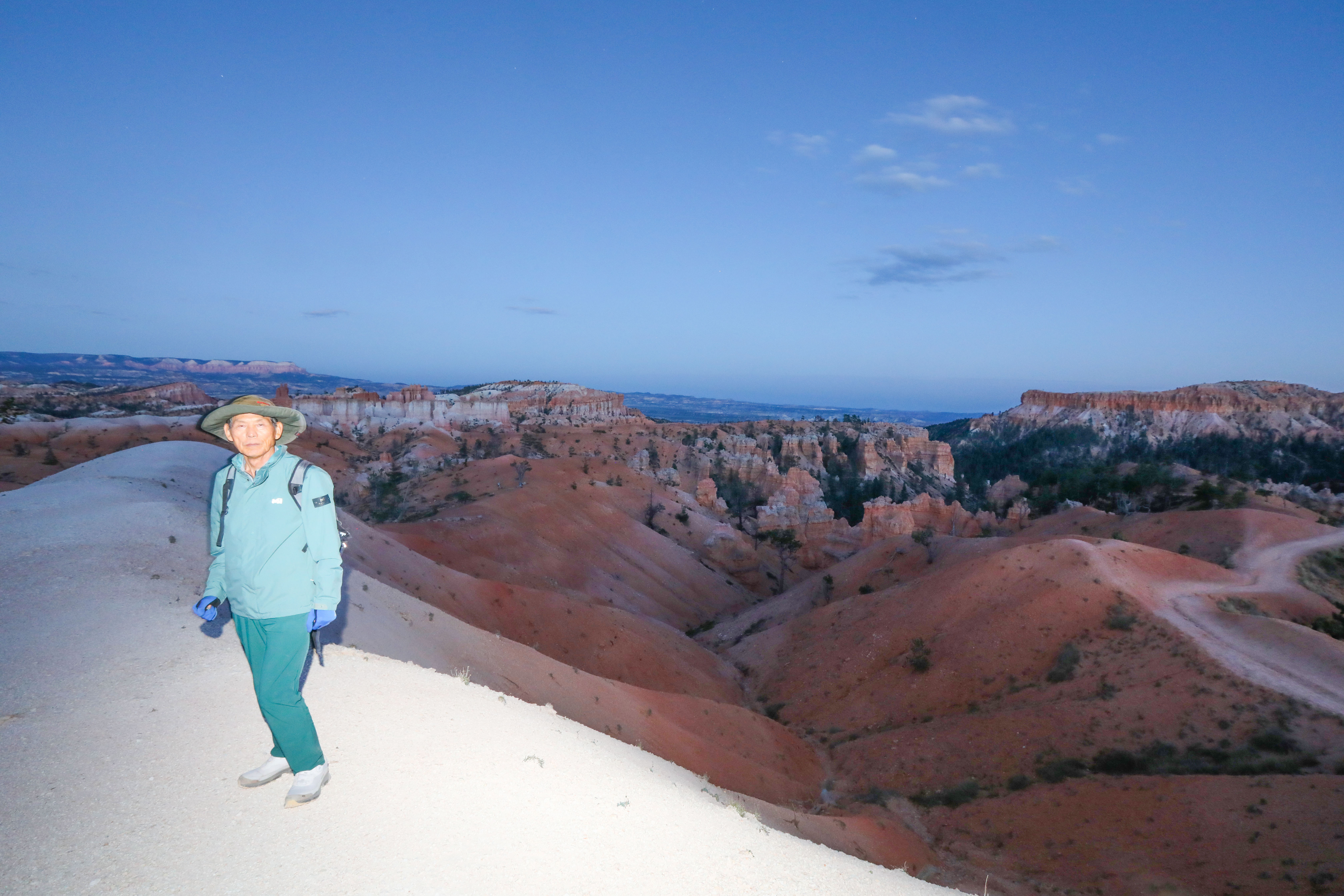 브라이스 캐년이 점점 밝아지는 그 분위기를 즐기고 있다.