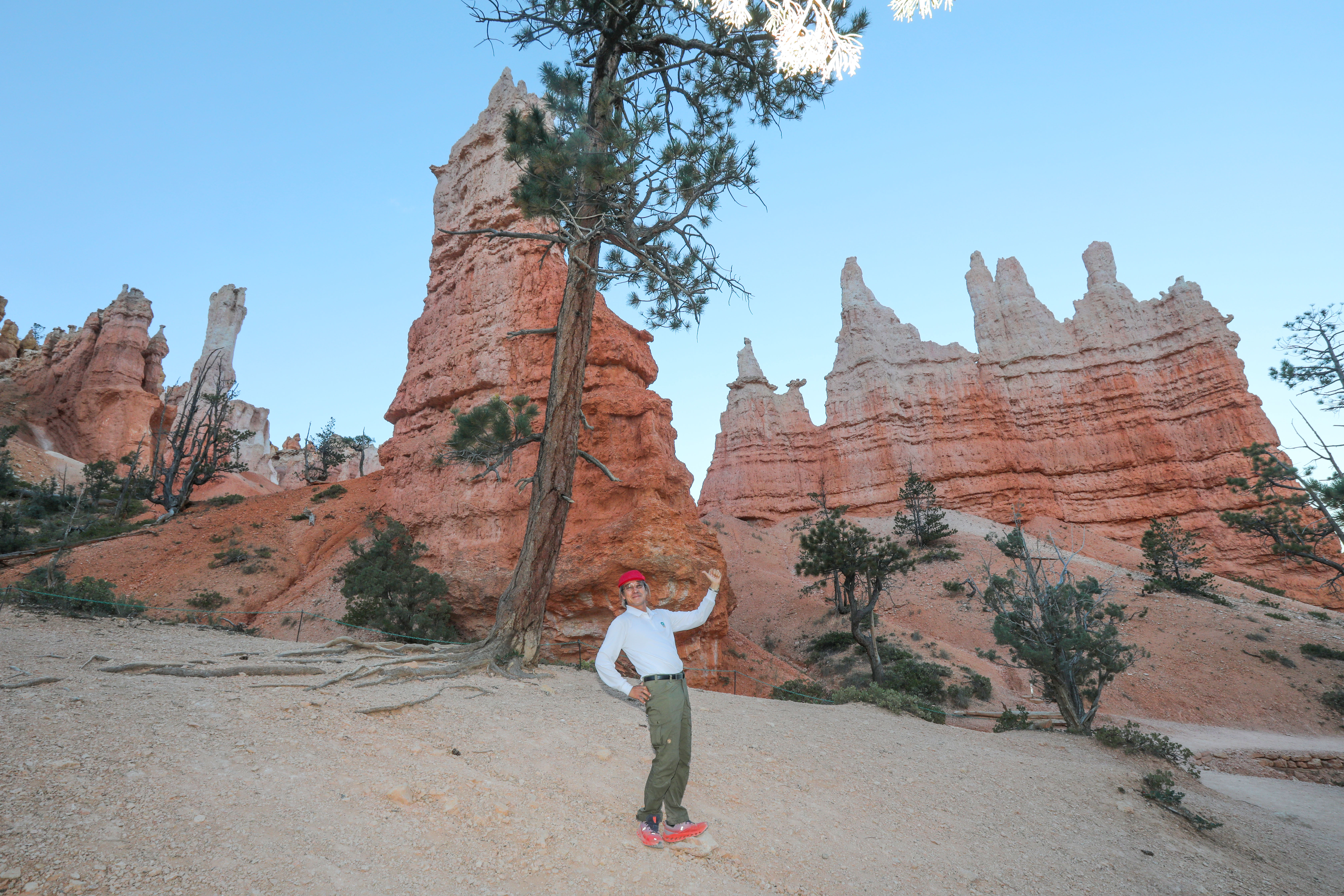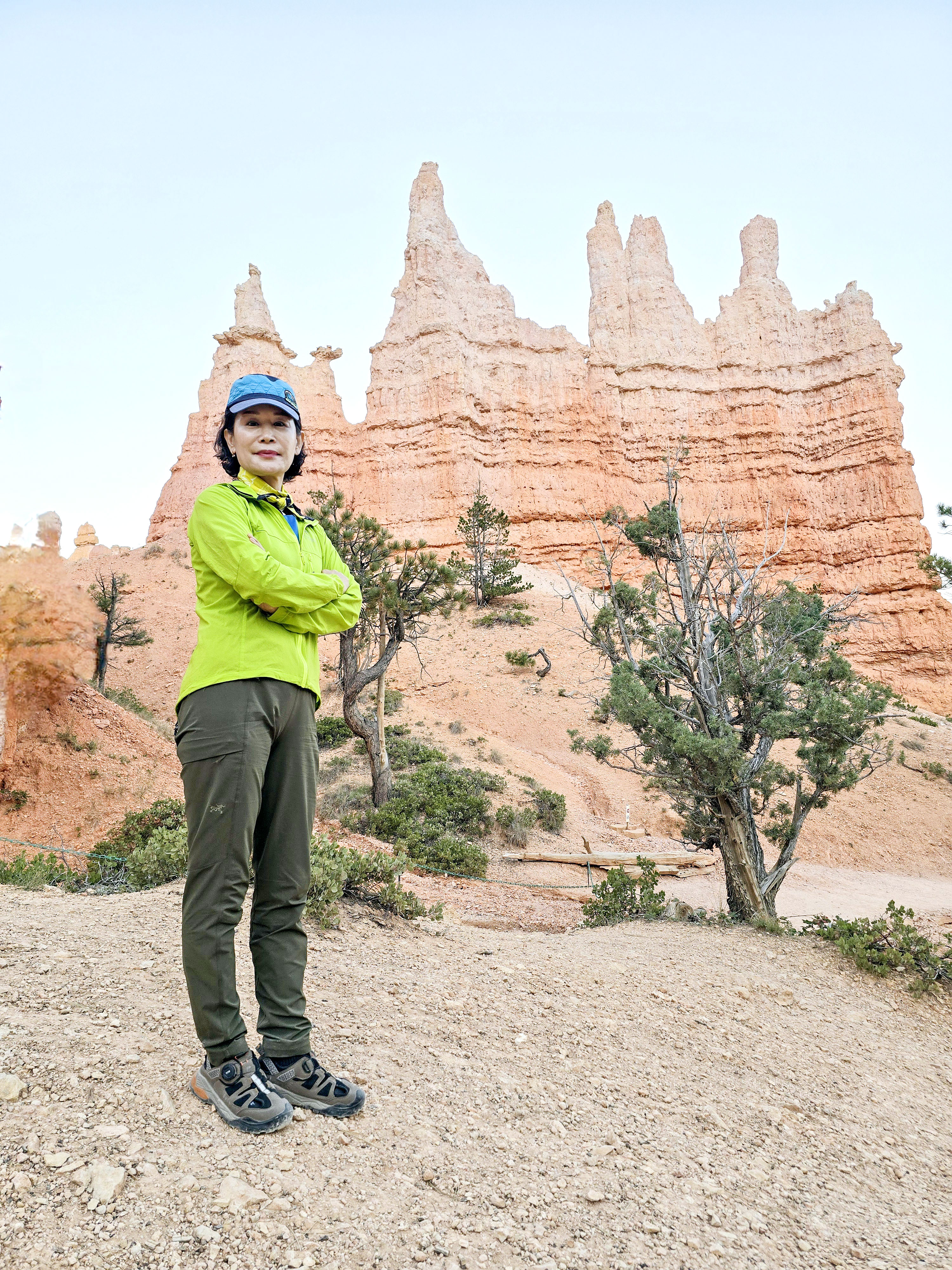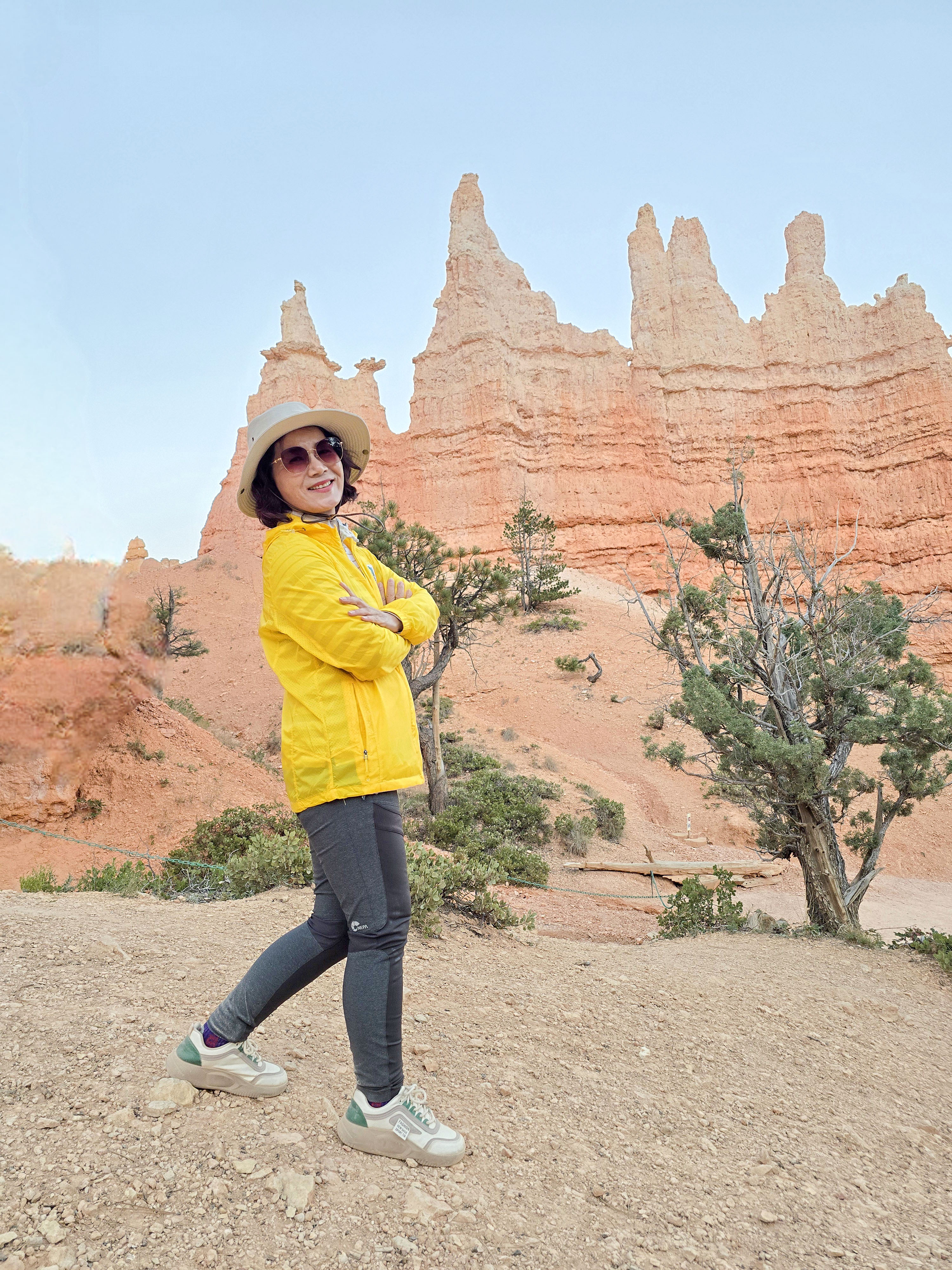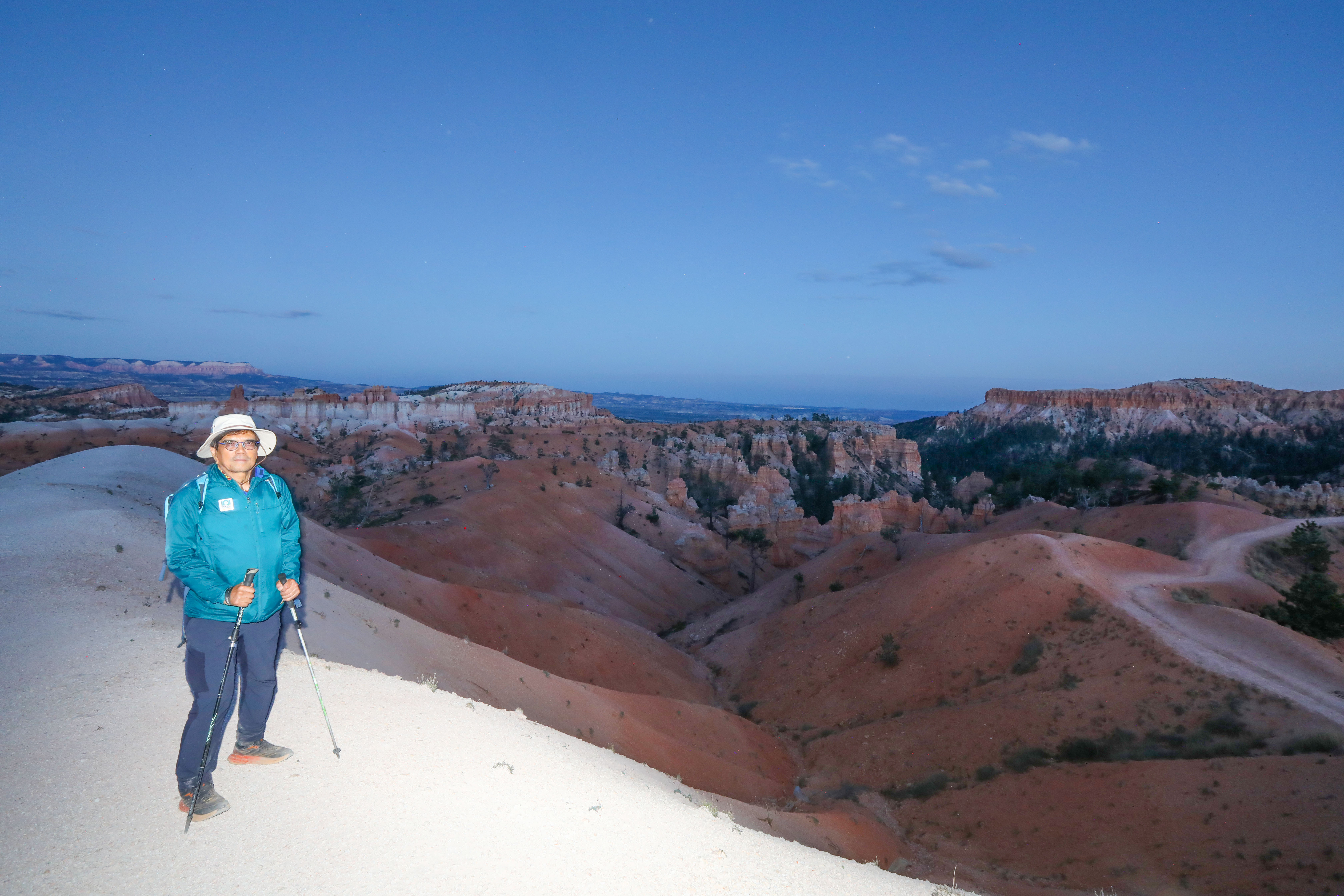 브라이스 캐년이 점점 밝아지는 그 분위기를 즐기고 있다.