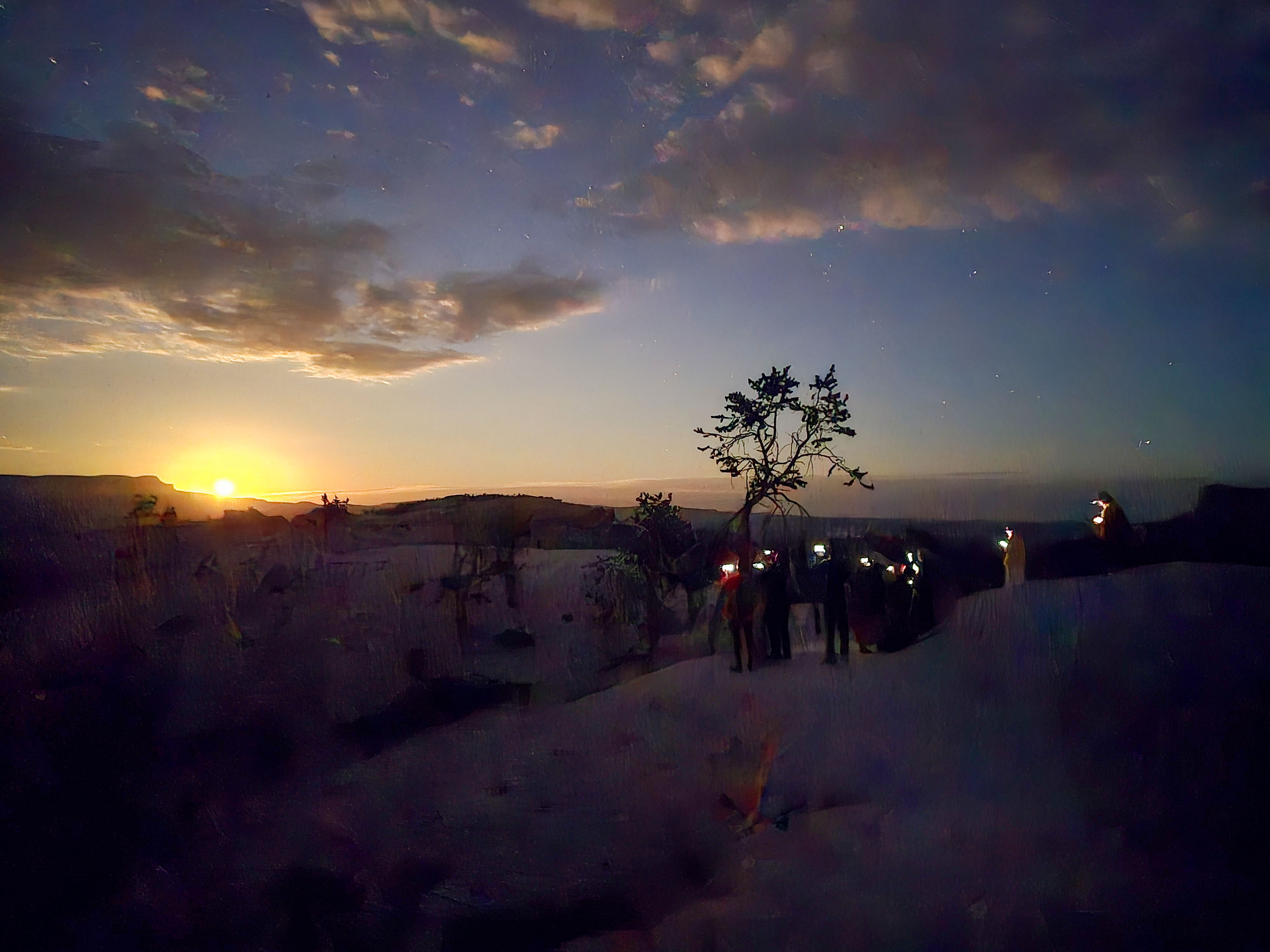 해가 올라오는 동안 캐년이 밝아지는 것을 보는 것이 일출이다.