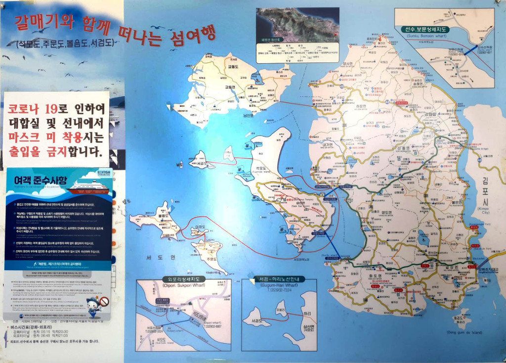 * 주문도 – 아차도 – 볼음도 – 외포리 구 선착장 순으로 경유