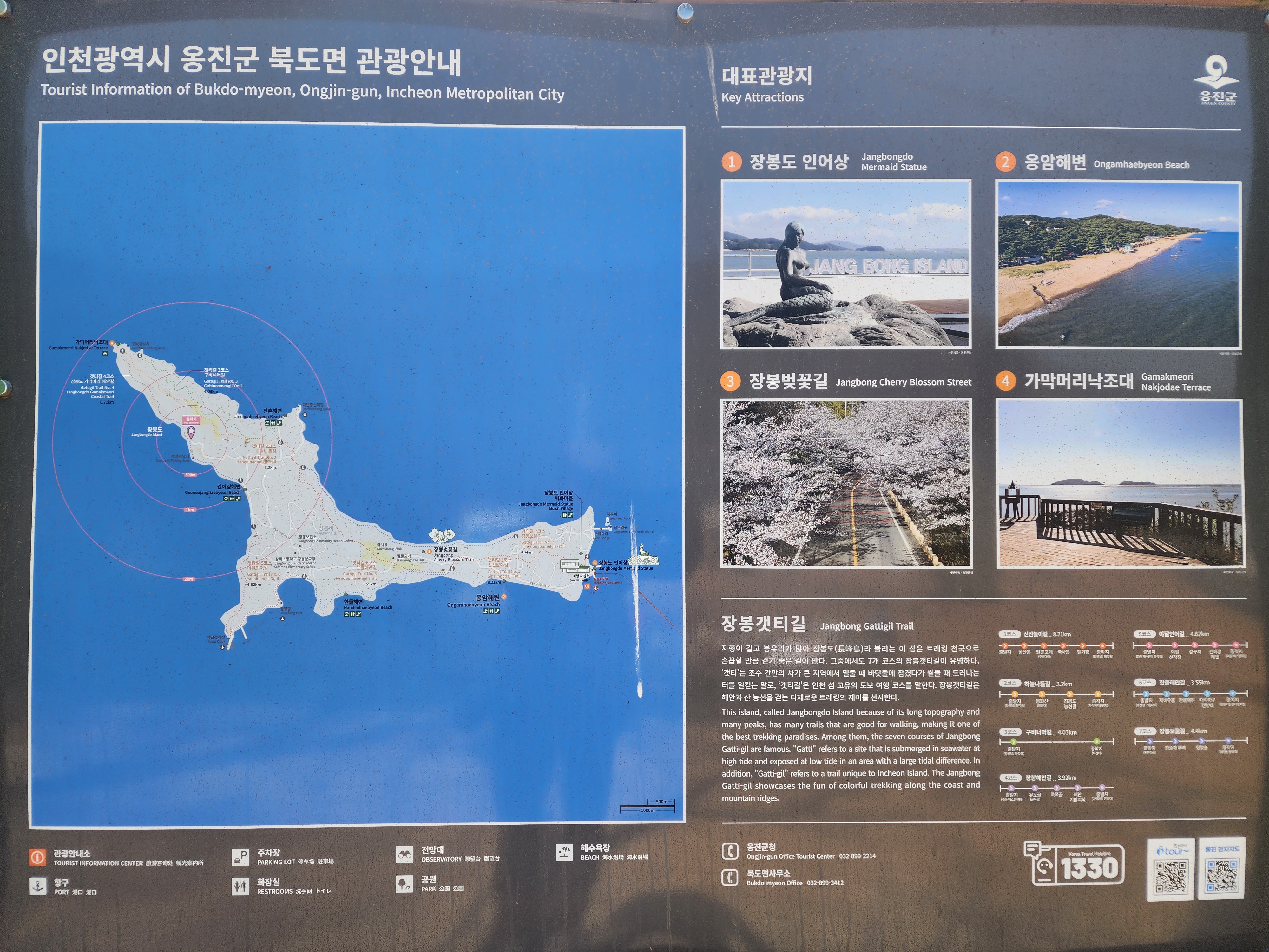 장봉도 북서쪽과 강화도 서쪽 사이에 위치한 이 곳에서는 해안을 따라 이어진 은빛 물결과 함께 이루어지는 낙조가 장관을 이루며 2km에 이르는 임도가 개설되어 등산을 즐기며 더욱 먹진 낙조를 감상할 수 있다.