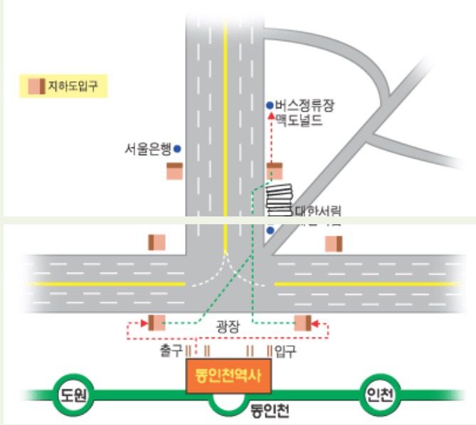| 1) 동인천역 하차 → 12번, 24번 시내버스 이용 (소요시간 20~30분 정도) 동인천역 맞은편 대한서림 옆 버스정류장 승차 | |||
