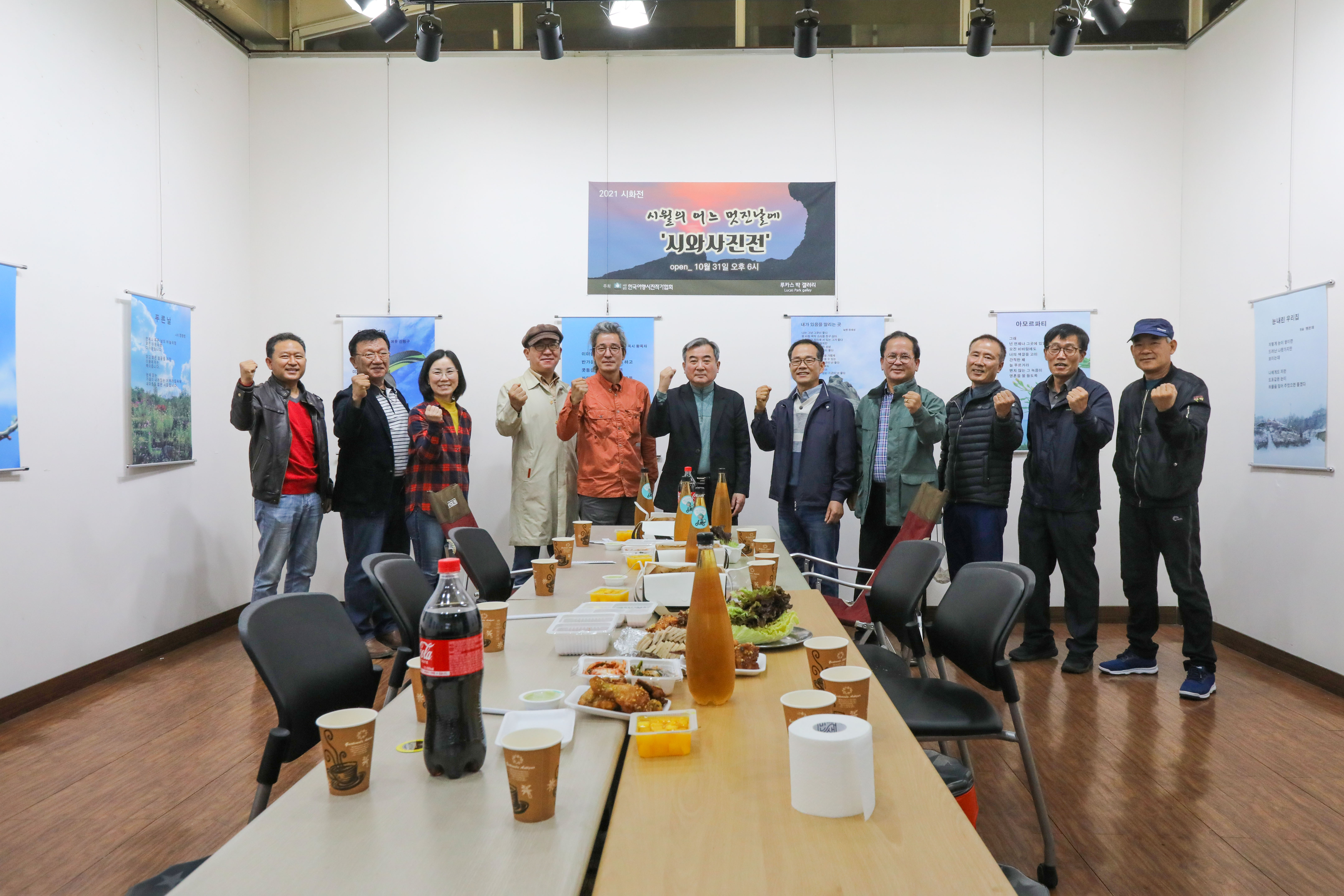 【KSD한국아트뉴스=어랑】 한국여행사진작가협회 제28회 시화전(시와사진전) 개전은 출품자를 비롯한 협회 감사 충하 김경환 부평지부장, 협회 사무총장 미리내 손성순 작가, 인천지역본부장 든솔 이충기 미추홀지부장 등이 참석하여 조촐하게 진행했다.