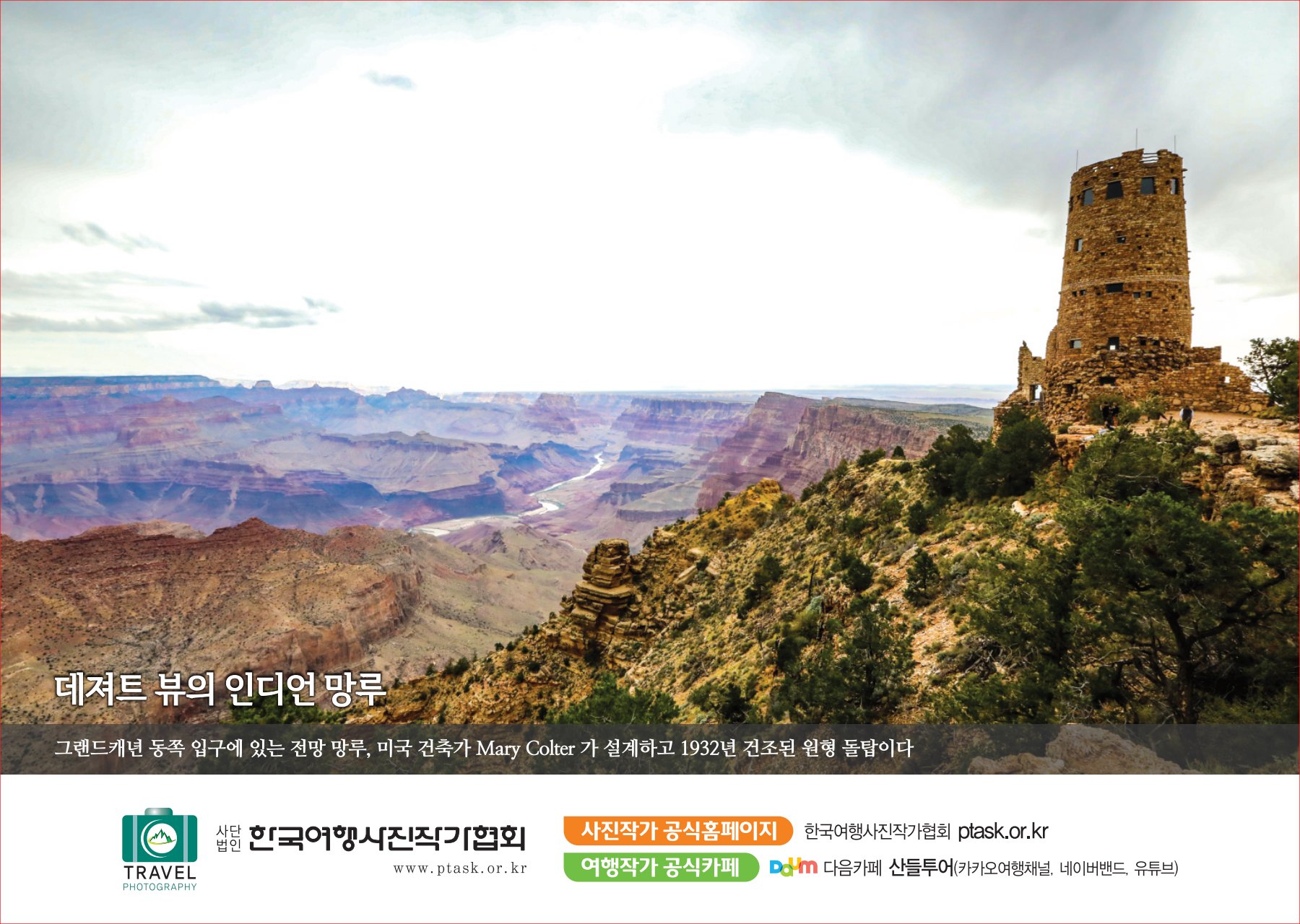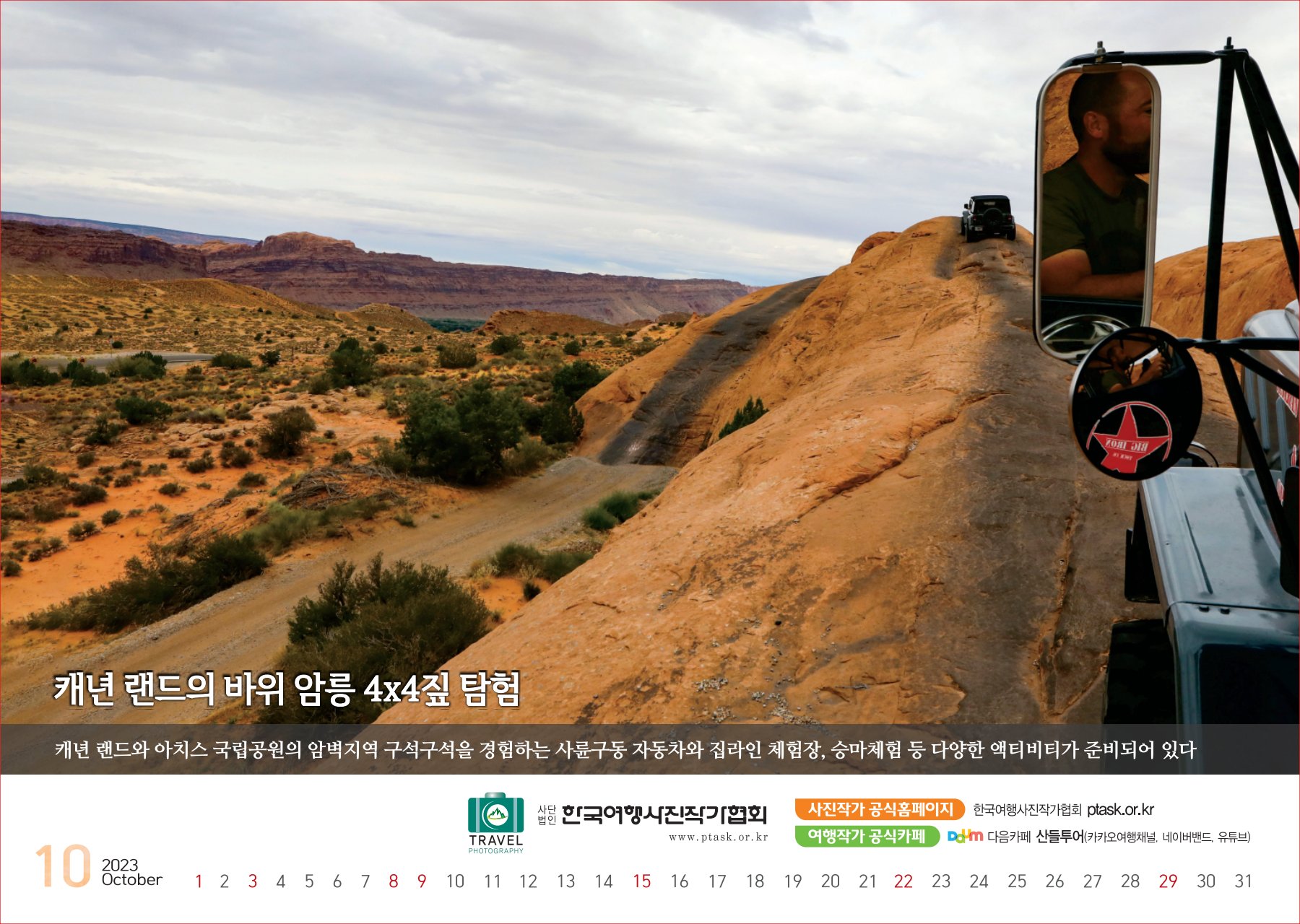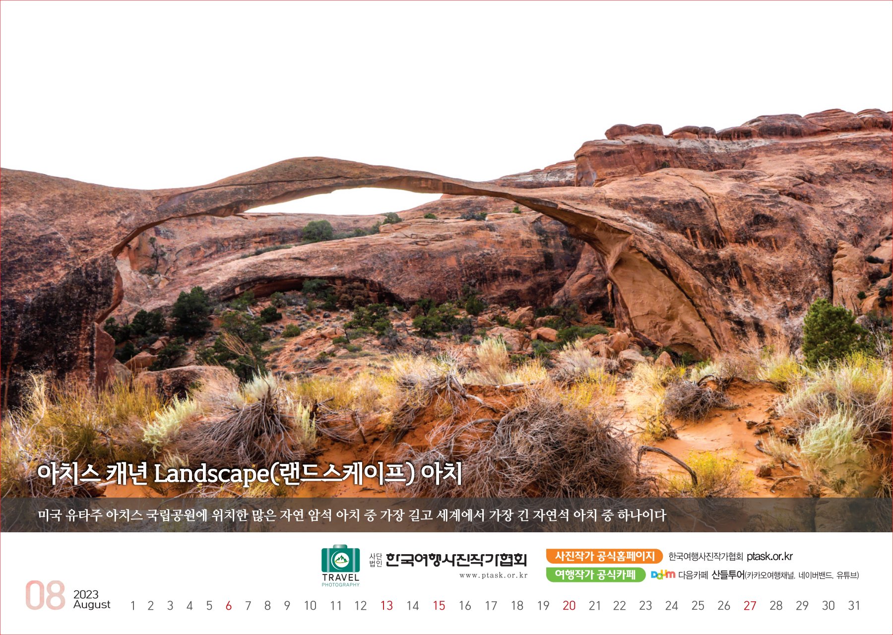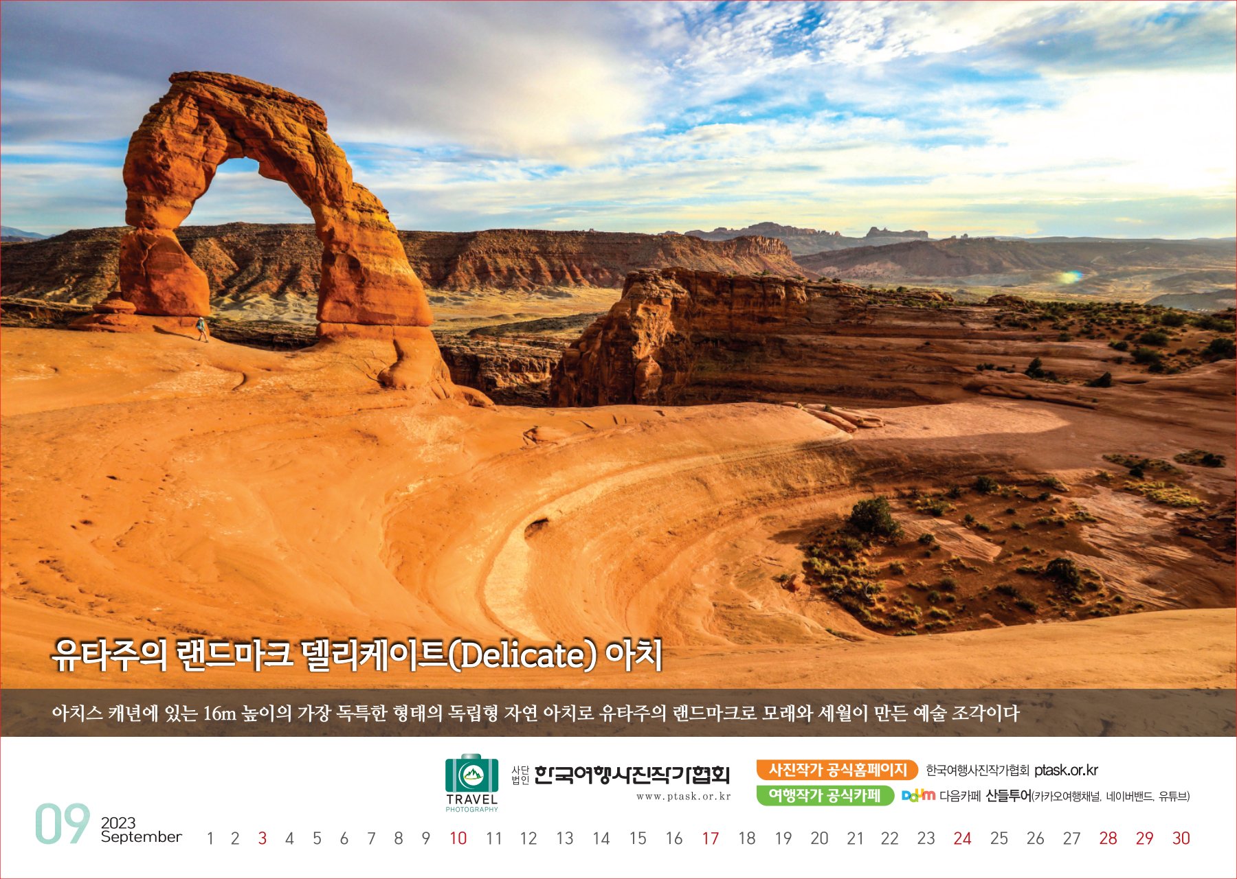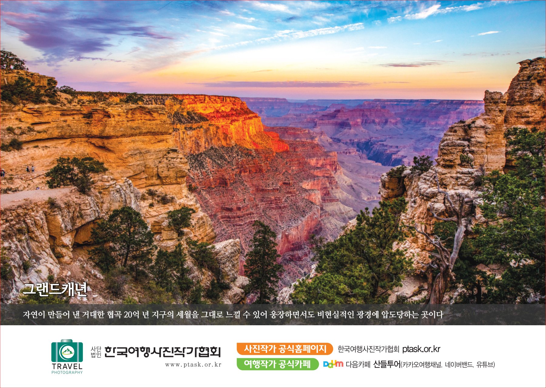 [한국아트뉴스=어랑] 한국여행사진작가협회에서 운영하는 산들투어 (대표 김주호)가 2023년 계묘년(癸卯年) 새해 ‘그랜드캐년 등 7대캐년’을 수록한 탁상용 달력 500개를 내달 2일부터 배부한다.