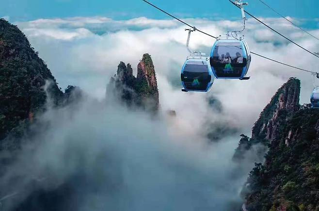 가이드의 설명을 들으며 한껏 기대감을 갖고 지난 10월 5일 개통됐다는 케이블카를 탔다. 총 길이는 3.7km, 상·하부 승강장 표고차는 1,000m에 달해 탑승 시간만 20분 걸린다. 기압변화로 귀가 멍할 정도다.
