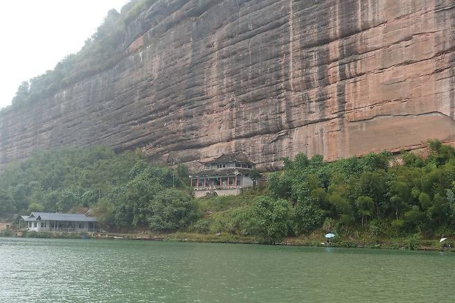 깎아지른 낭떠러지를 따라 이어 걷는다. 길은 절벽 안으로 숨기도, 밖으로 나가기도 하면서 시원한 경치를 선사한다. 중간 샛길인 소천대小天臺로 올라서는 기점엔 놀랍게도 식당이 있다. 절벽 위에 지어진 이 식당의 이름은 ‘망산협곡식당’. 이곳에선 망산 지역에서 난 채소와 버섯으로 만든 요리를 낸다. 종업원의 귀에는 큼지막한 은 귀걸이가 걸려 있다.
