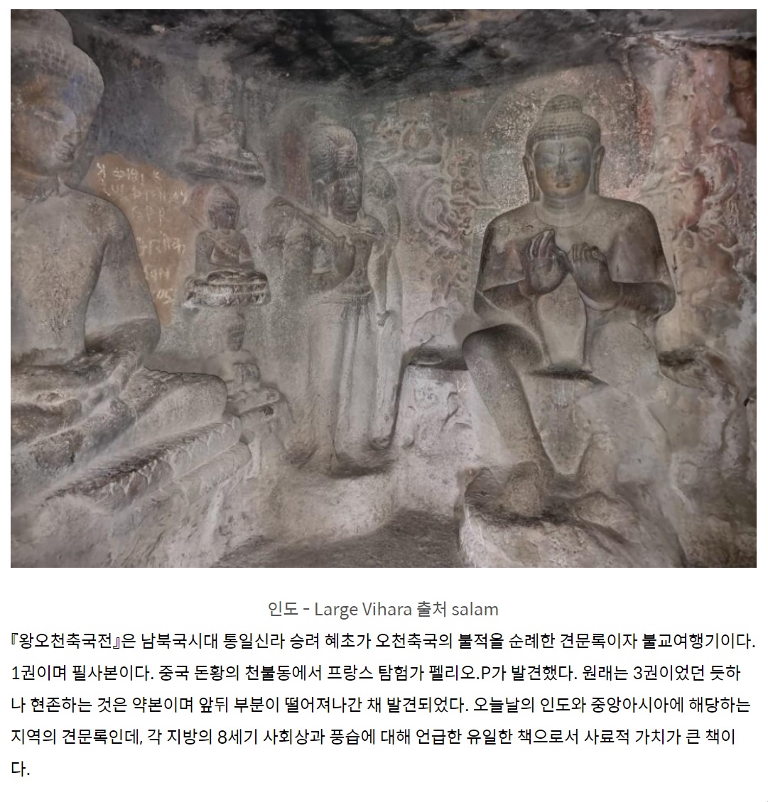 천축국은 지금의 인도, 이곳을 다녀온 여행기라 하겠다. 불법을 연구하고 구도를 위해 불교의 발상지를 찾은 것이다. 일종의 성지순례이지만 그의 여행은 문명기행이였다.