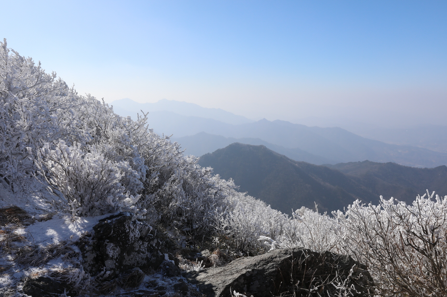 백두대간에서 겨울 경치가 가장 아름다운 산을 내 세운다면 덕유산이라 합니다