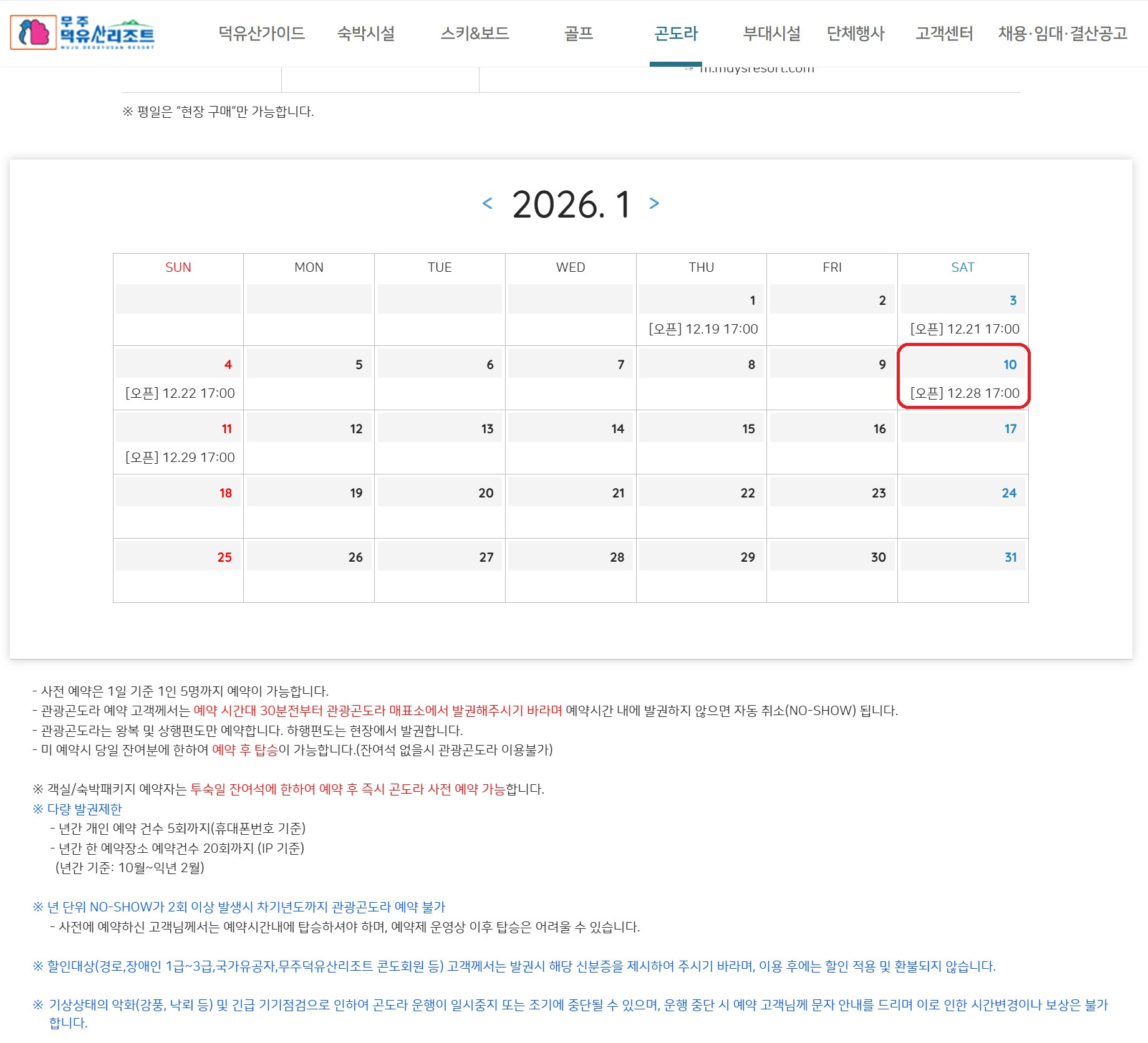 곤도라 예약은 각자 진행합니다