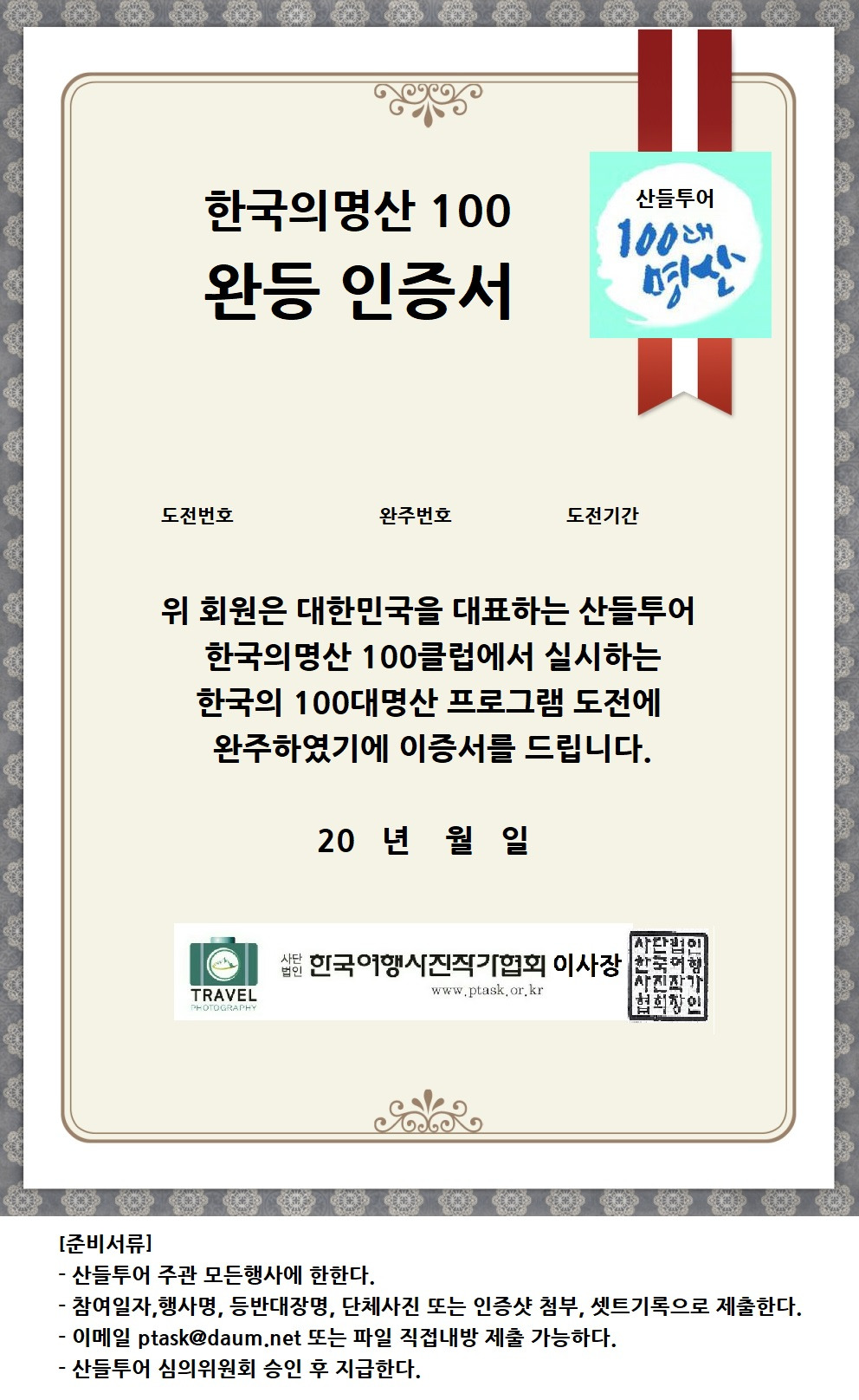 산들투어 100명산 도전단