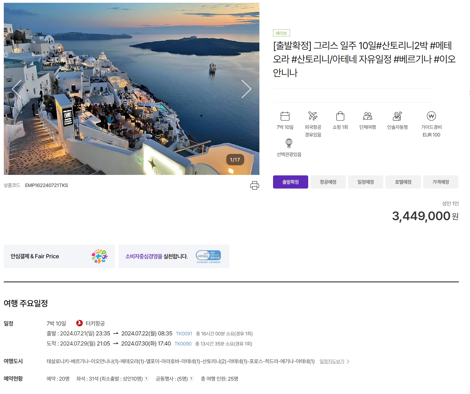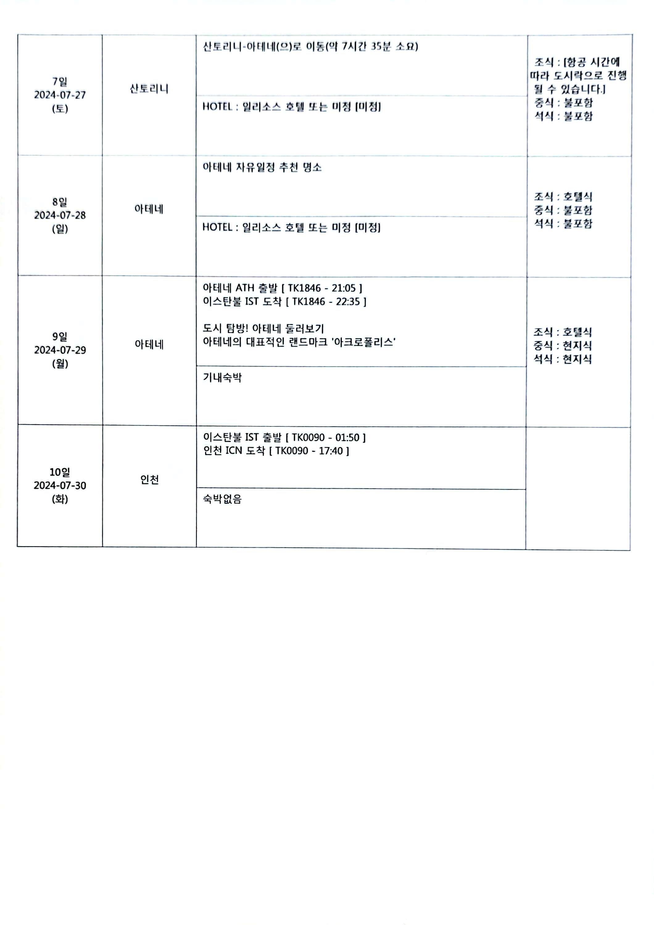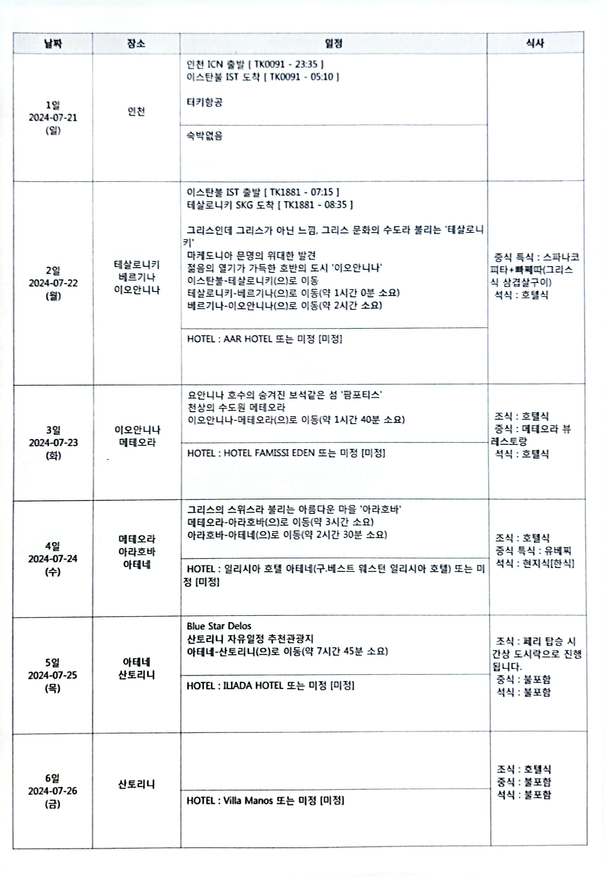 7월21일 지중해 보석같은 나라 그리스 9박10일 출발 확정