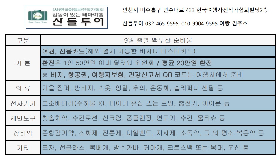 2025년 8월 백두산 여행 준비물