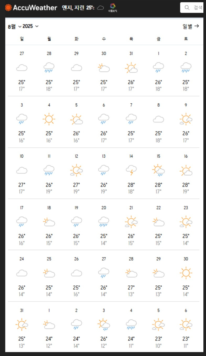 비가 많이 내린 7~8월... 해마다 찾아오는 장마라 천지를 볼수있는 확율도 거의 제로입니다.