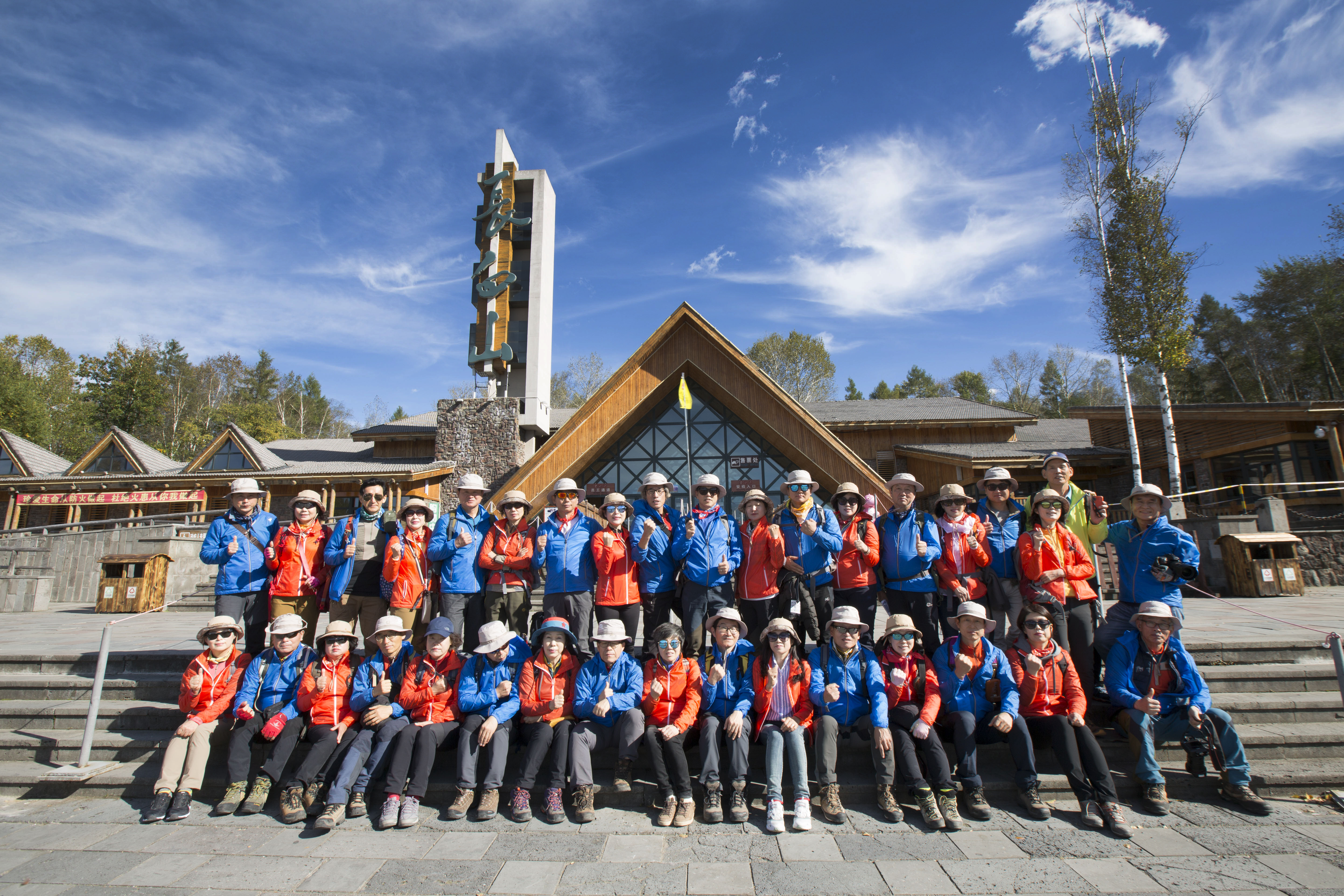 침엽수림이 울창한 백두산 밀림에 빨강과 노랑 파랑이 푸르른 하늘에 흰구름들과 파란 천지물과 함께 오색 조화를 이루어 백두산의 아름다움을 한층 더 돗구어 줍니다.