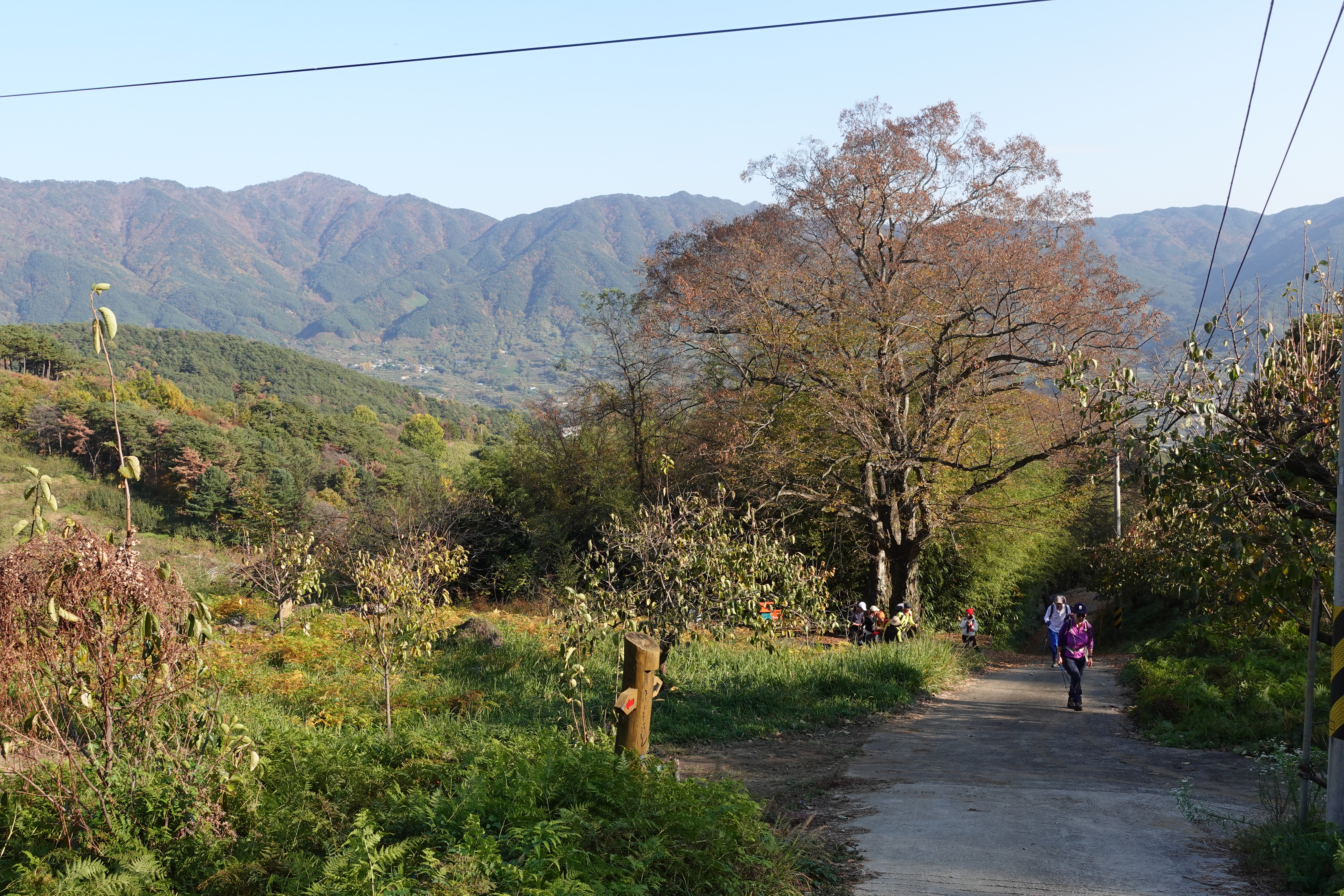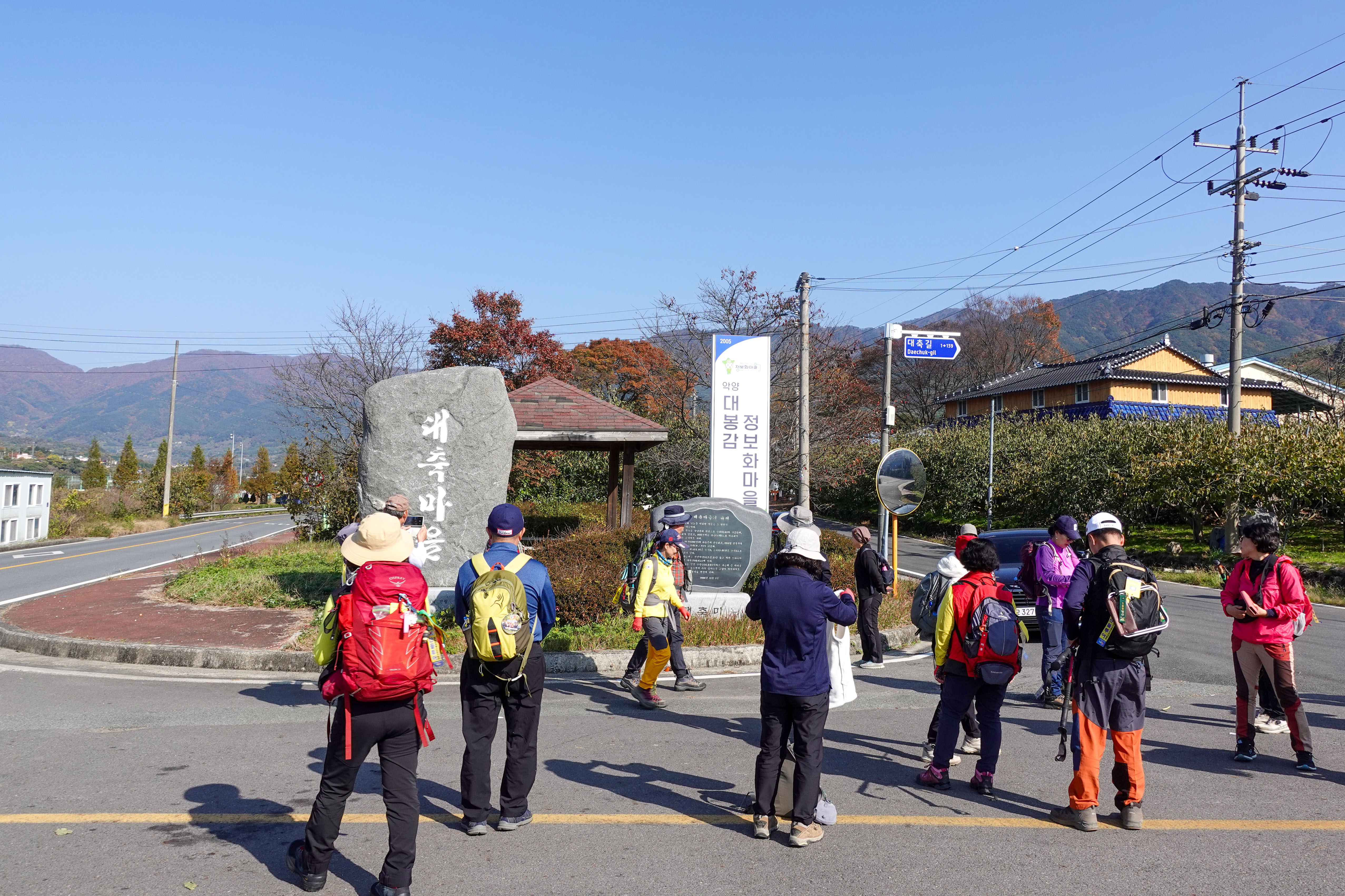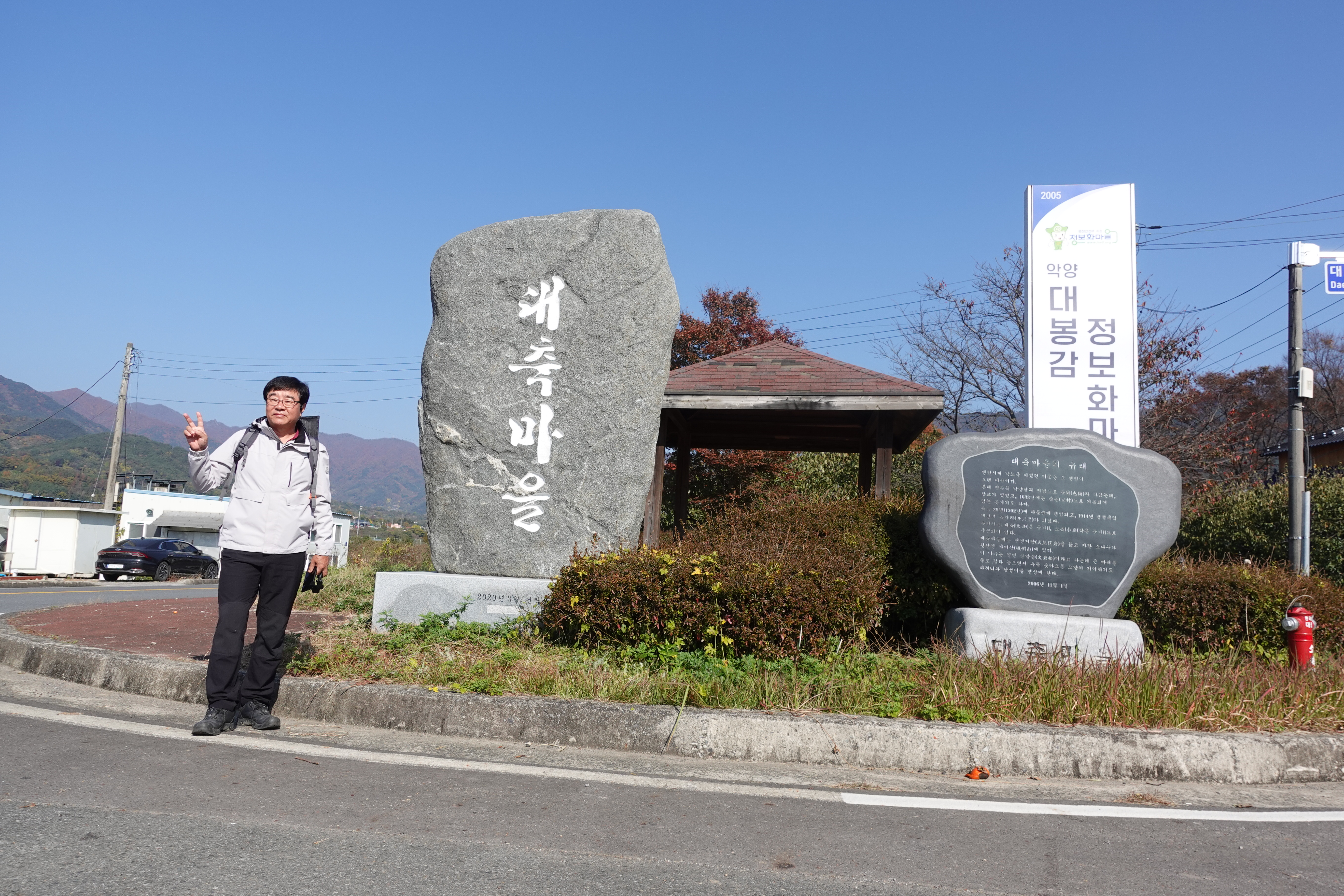 대축마을 출발지에서 출발하는데 감나무 주인장께서 대봉 하나를 건네 받고 행운을 얻은 기분으로 가는 것이다.