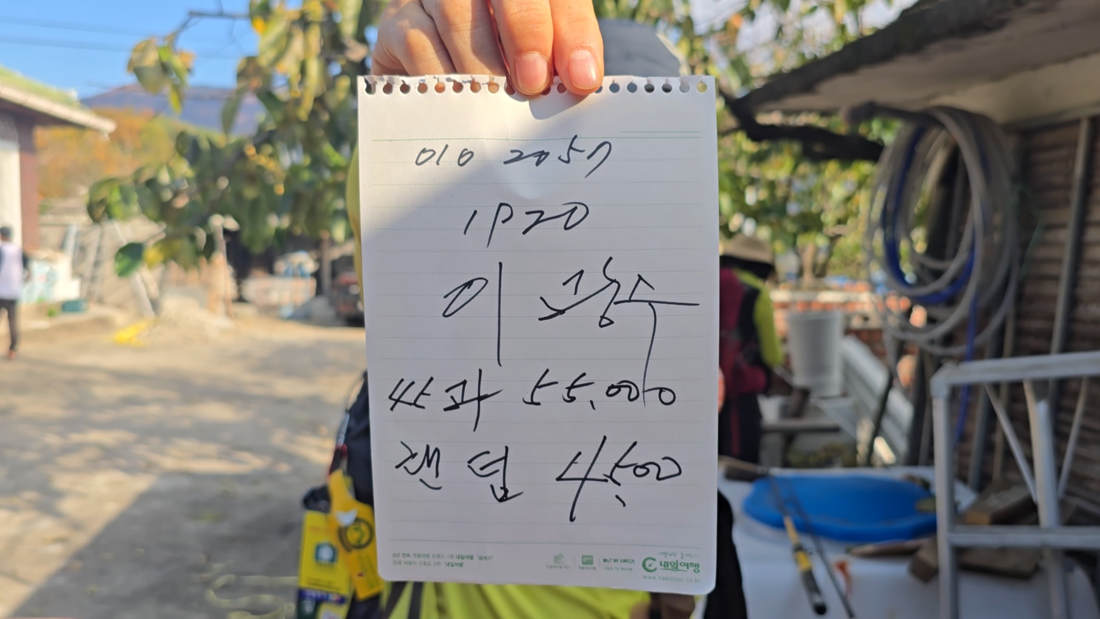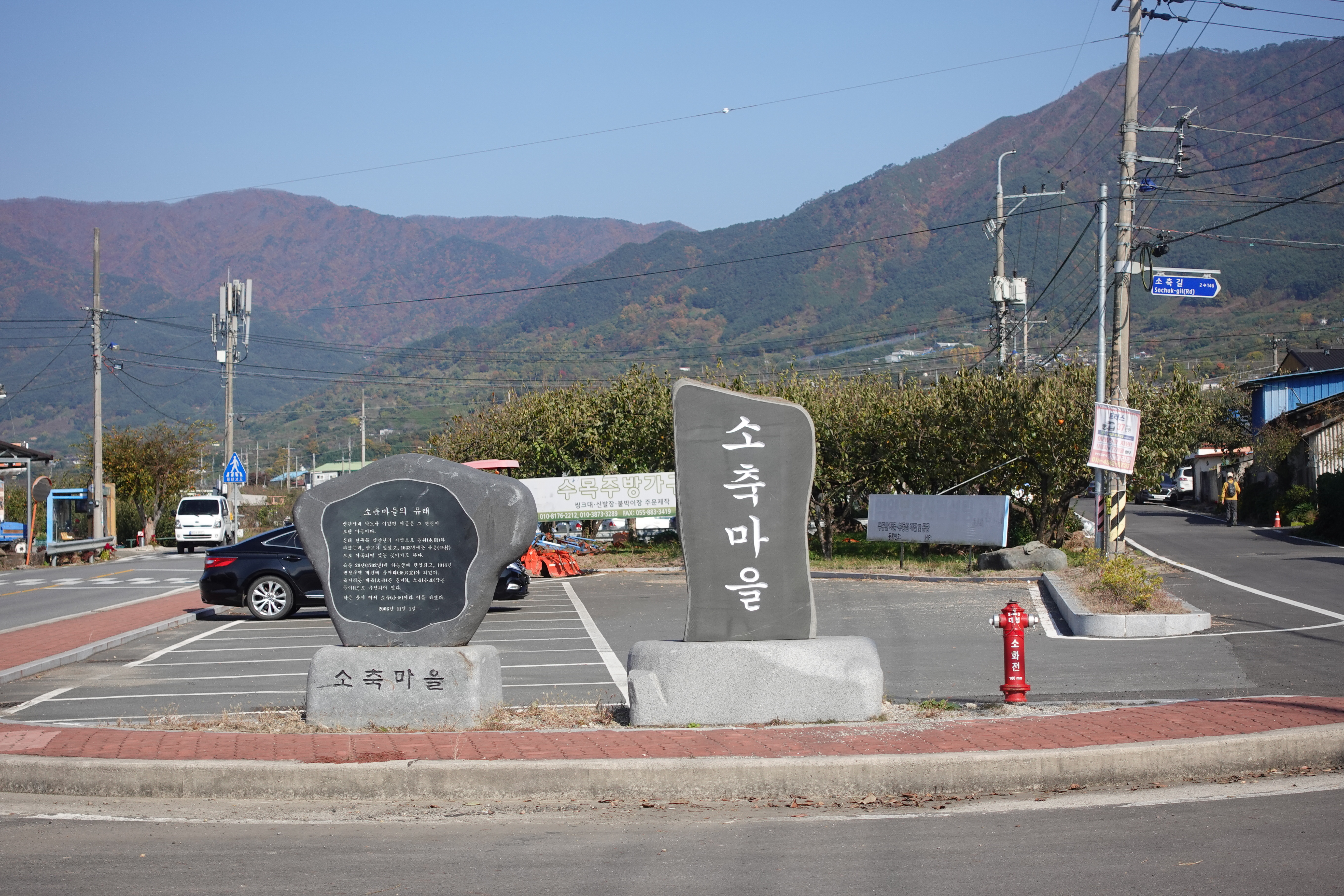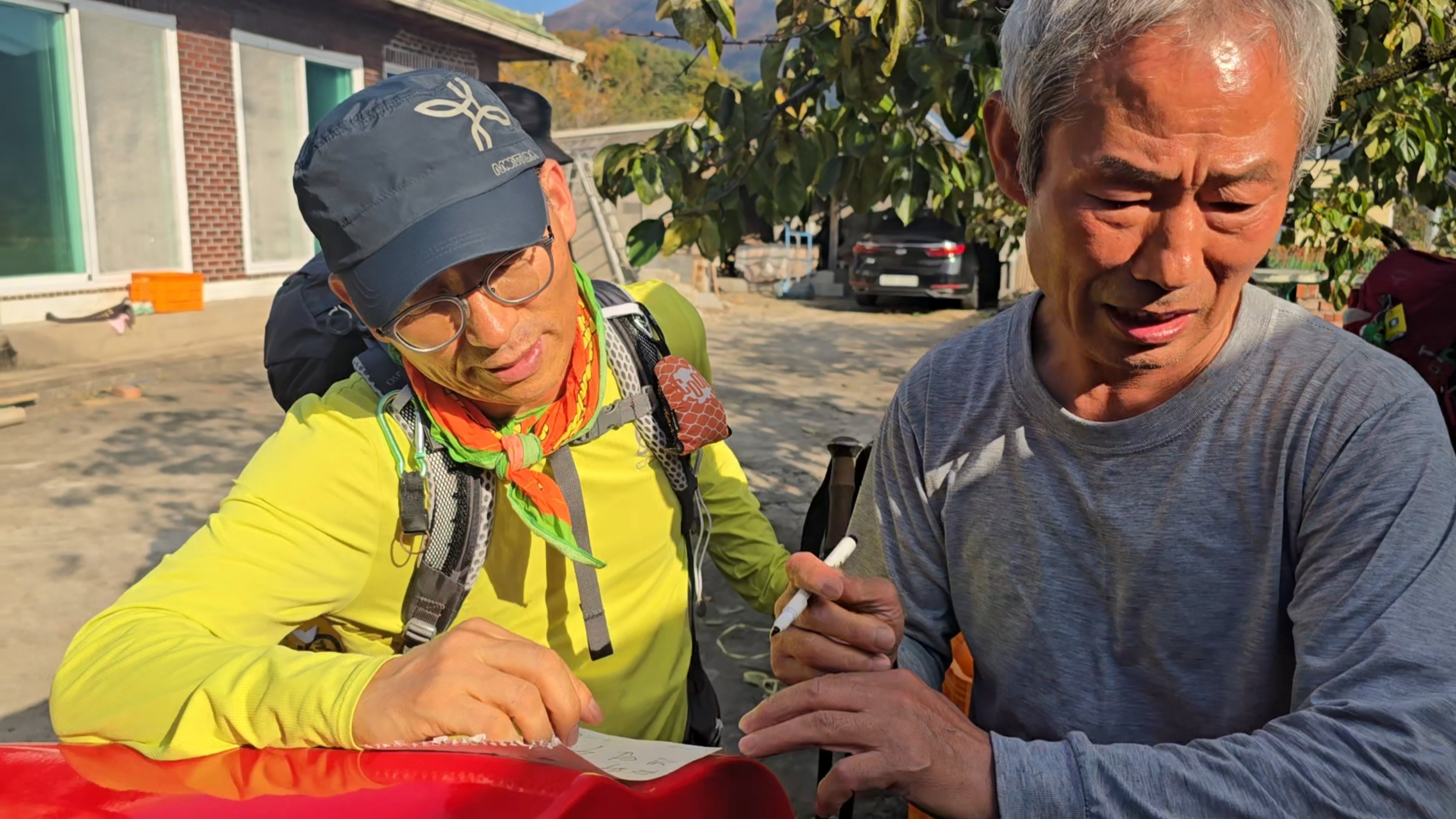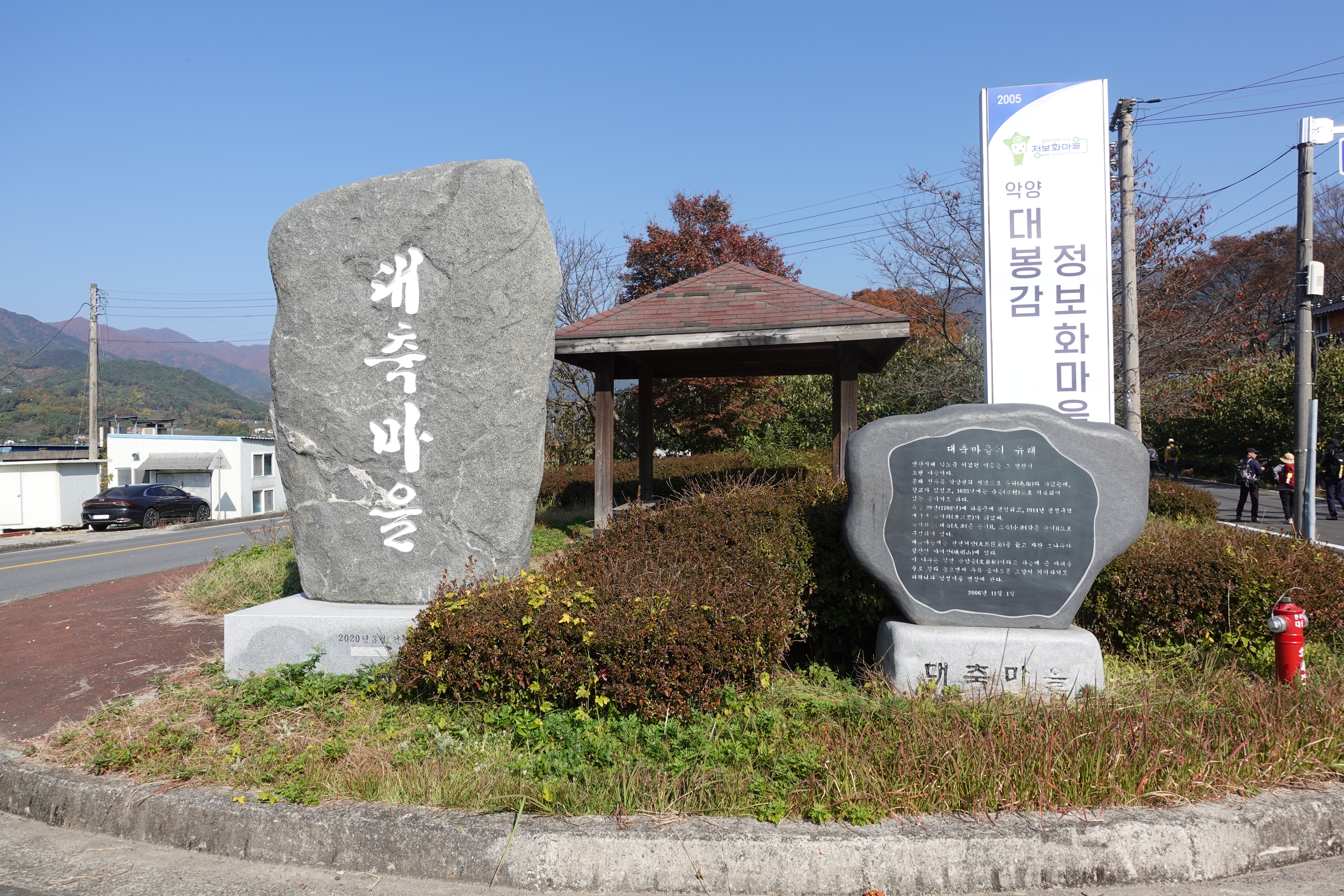 대축마을 출발지에서 출발하는데 감나무 주인장께서 대봉 하나를 건네 받고 행운을 얻은 기분으로 가는 것이다.