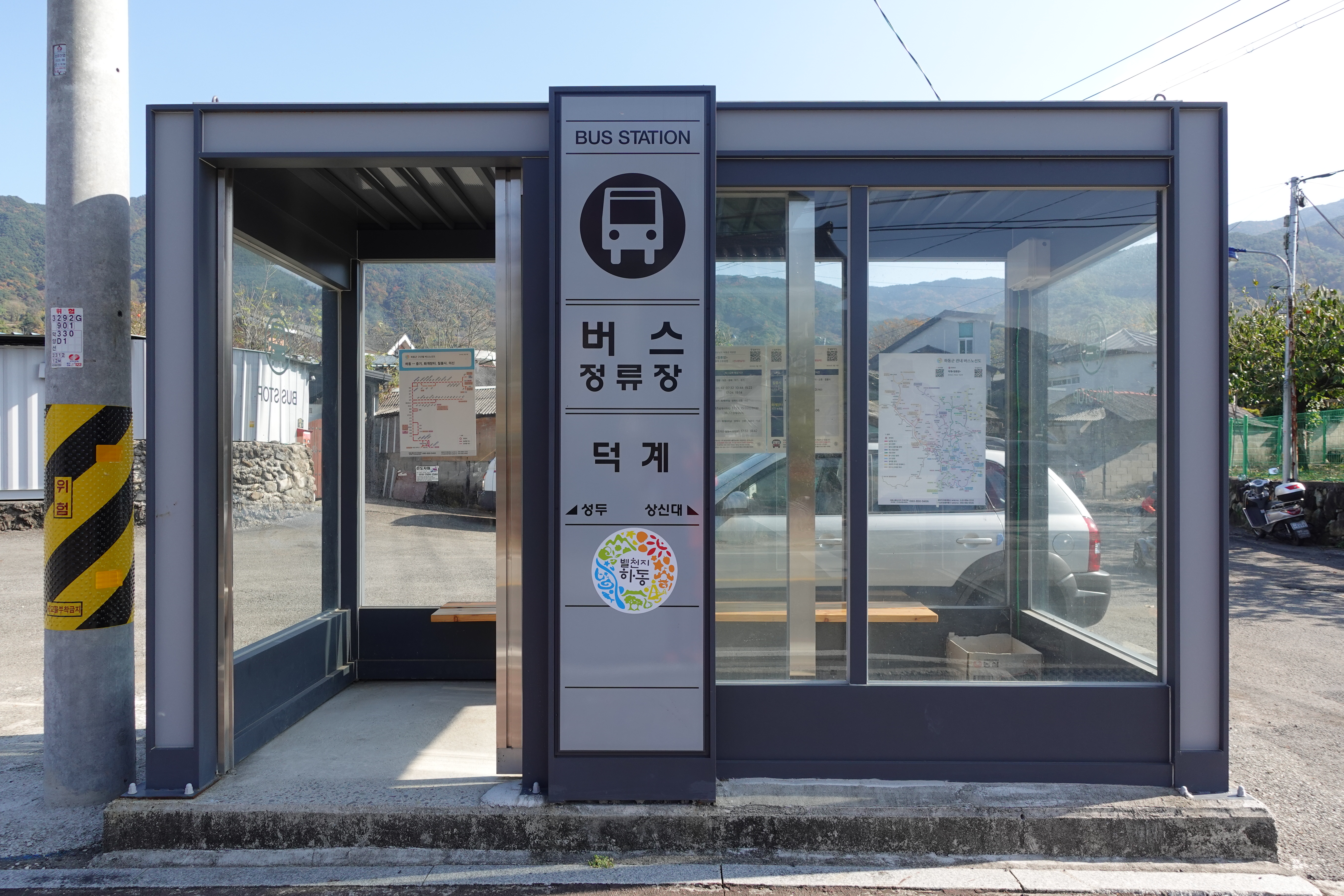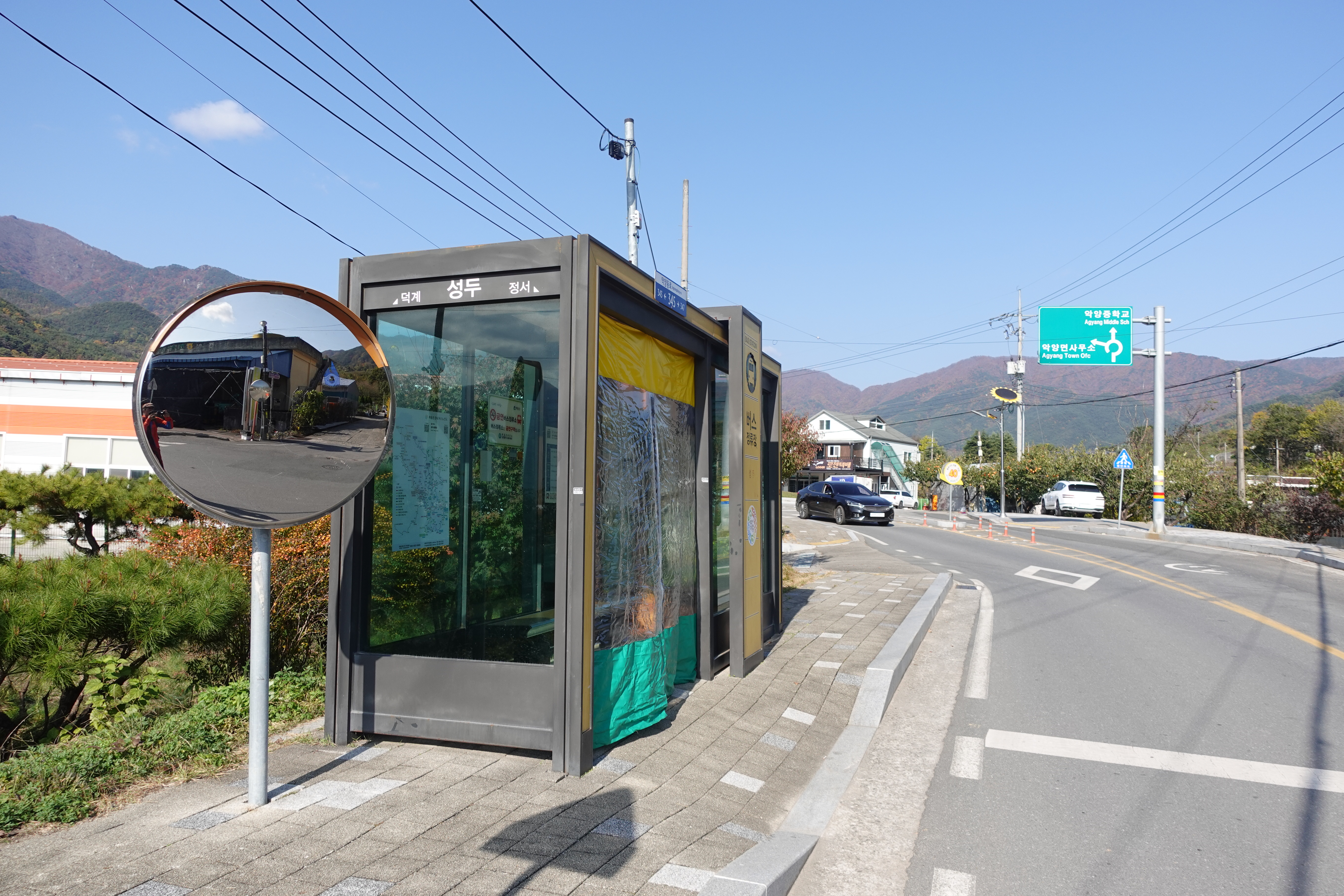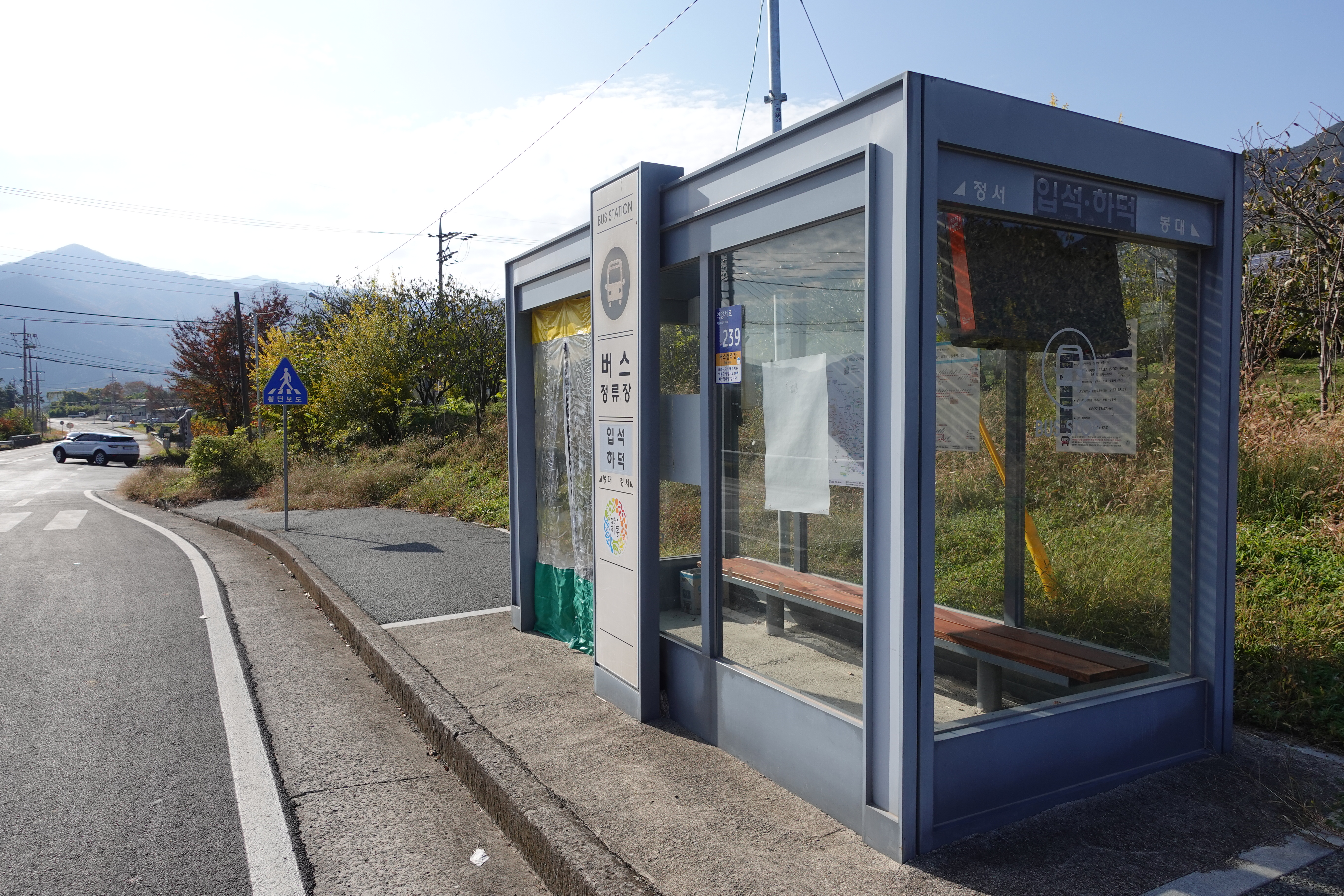 스탬프 위치 입석마을 : 서어나무쉼터 벤치 옆에 위치
