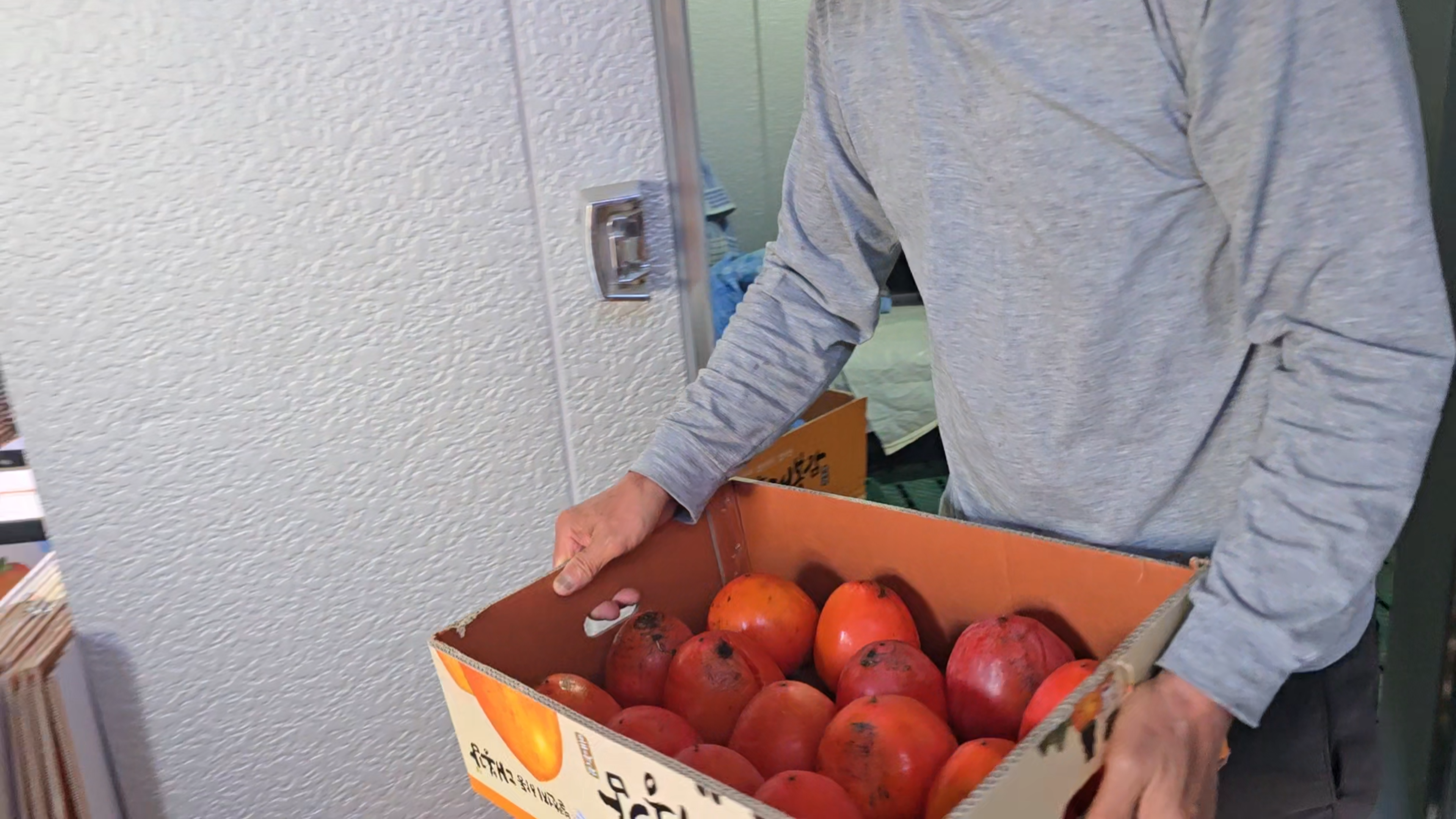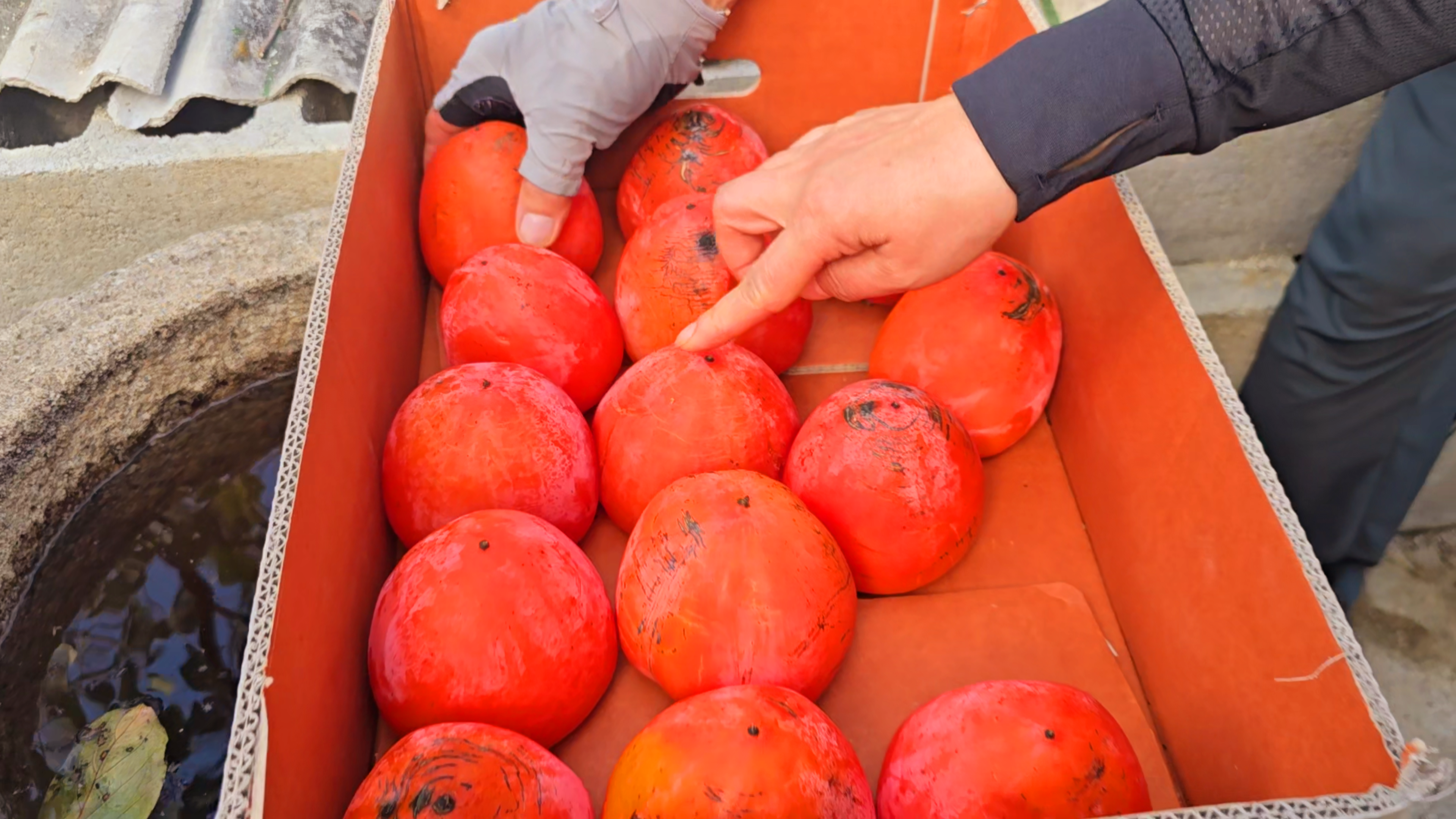 대형 냉장고에 보관하는 홍시 한상자를 꺼내어 선뜩 내어준다.