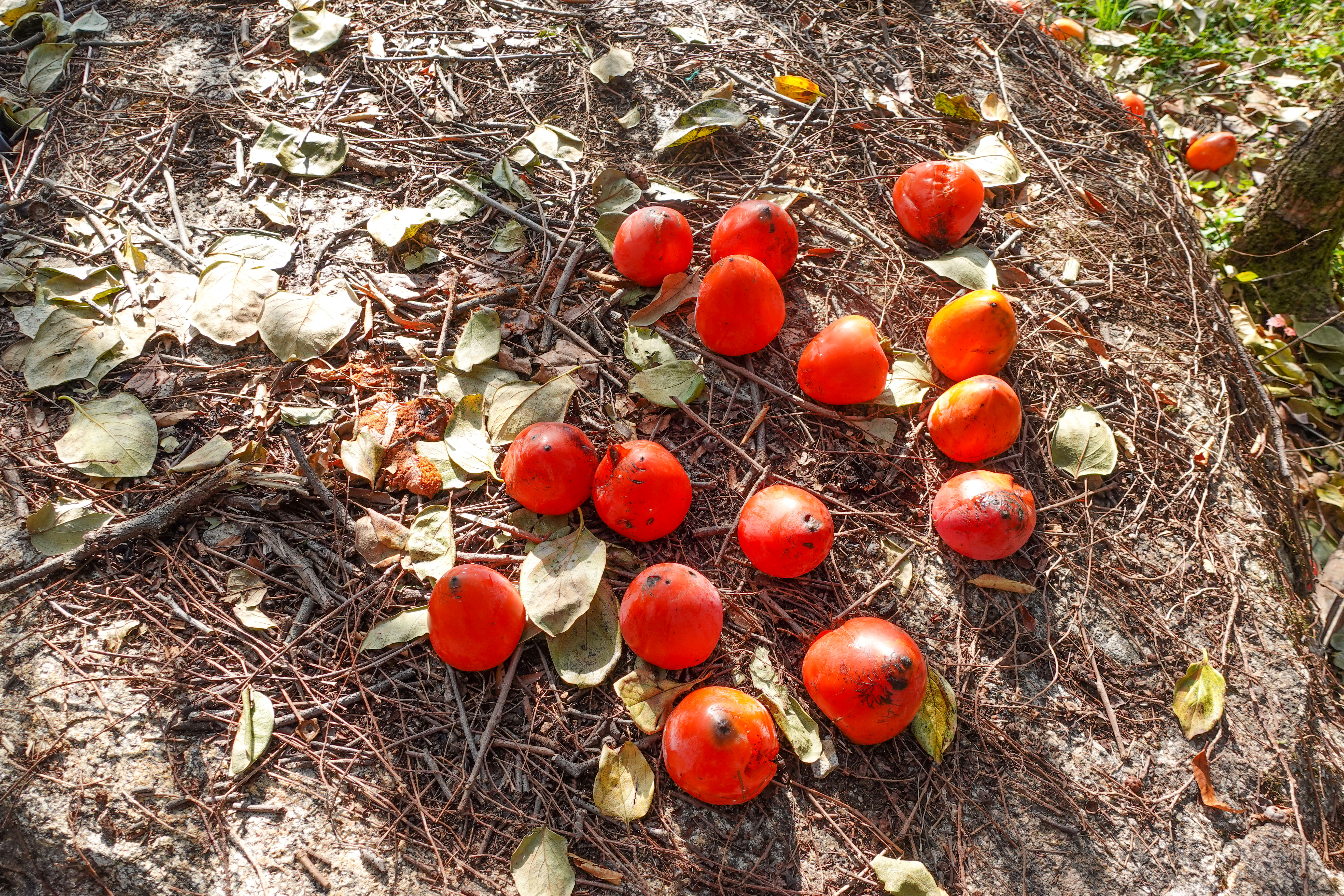 감나무 아래 떨어진 대봉을 수북히 쌓아놓고 주어가라고 손짓하고 있었다.