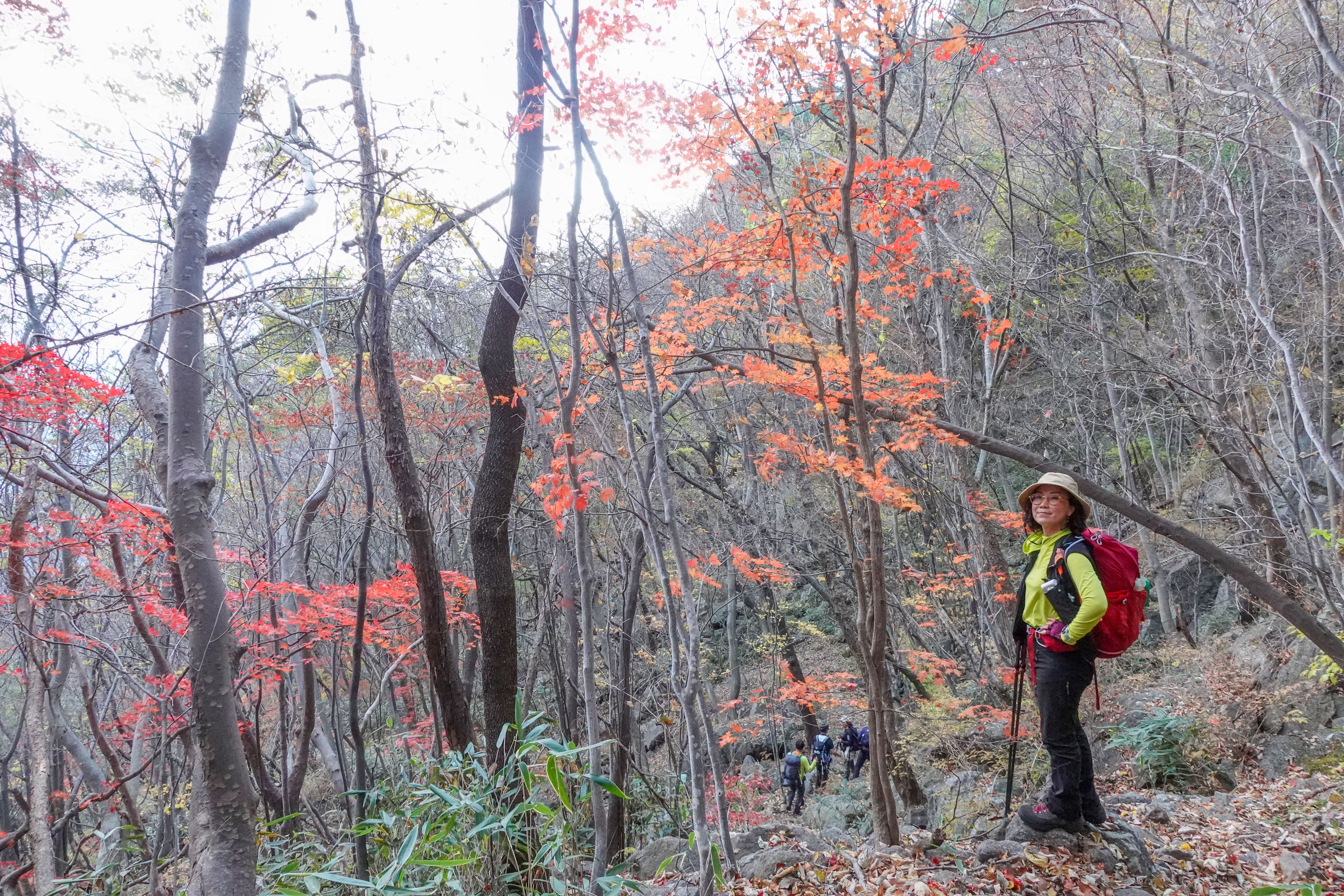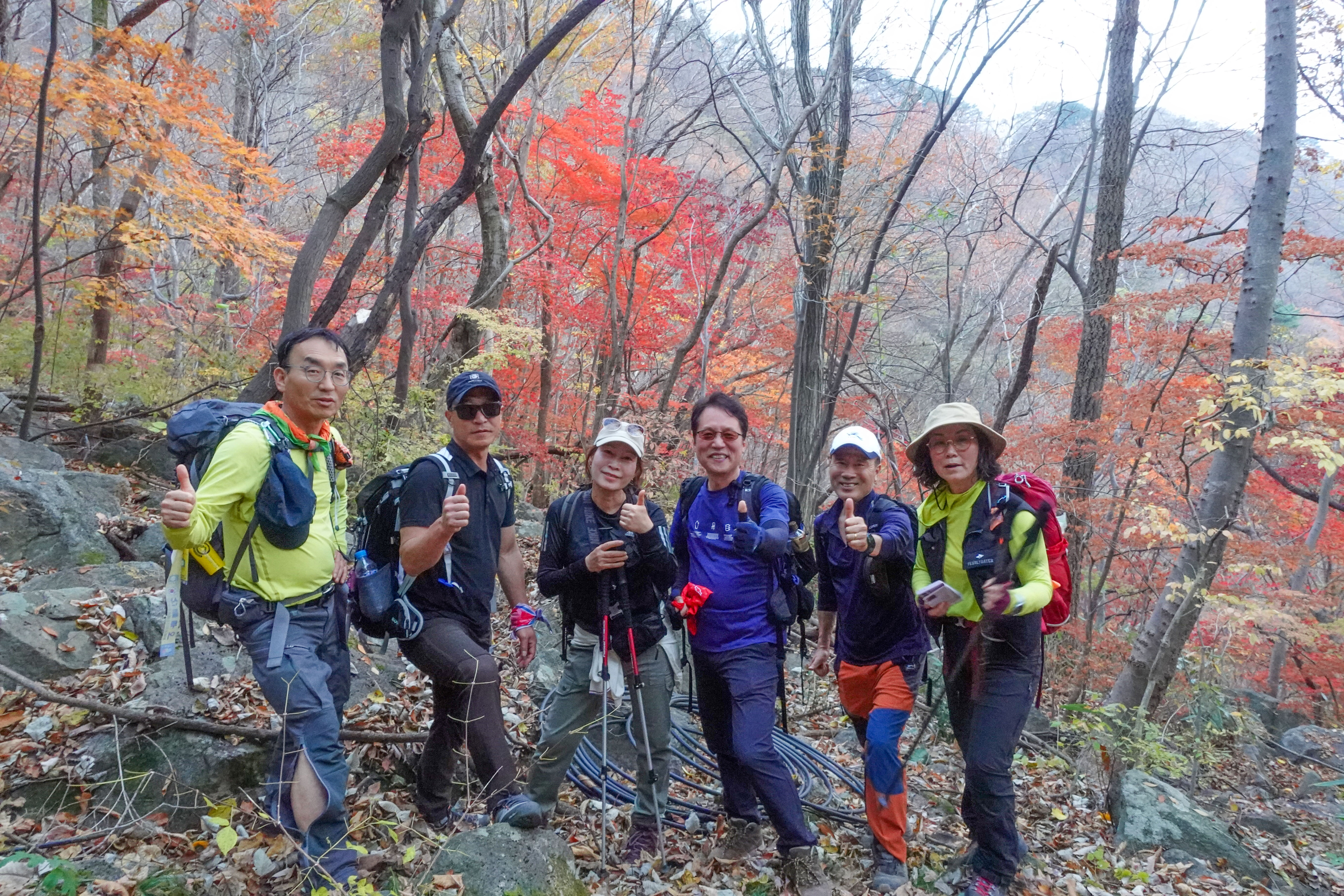 울긋불근 고운 단풍이 아름답게 물든어 있는 작은 계곡 옆으로 숲길이 이어진다.