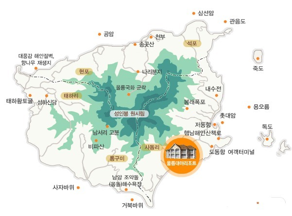 자연과 함께하는 낭만이 어우러지는 대아울릉리조트에서 행복을 찾아드립니다.