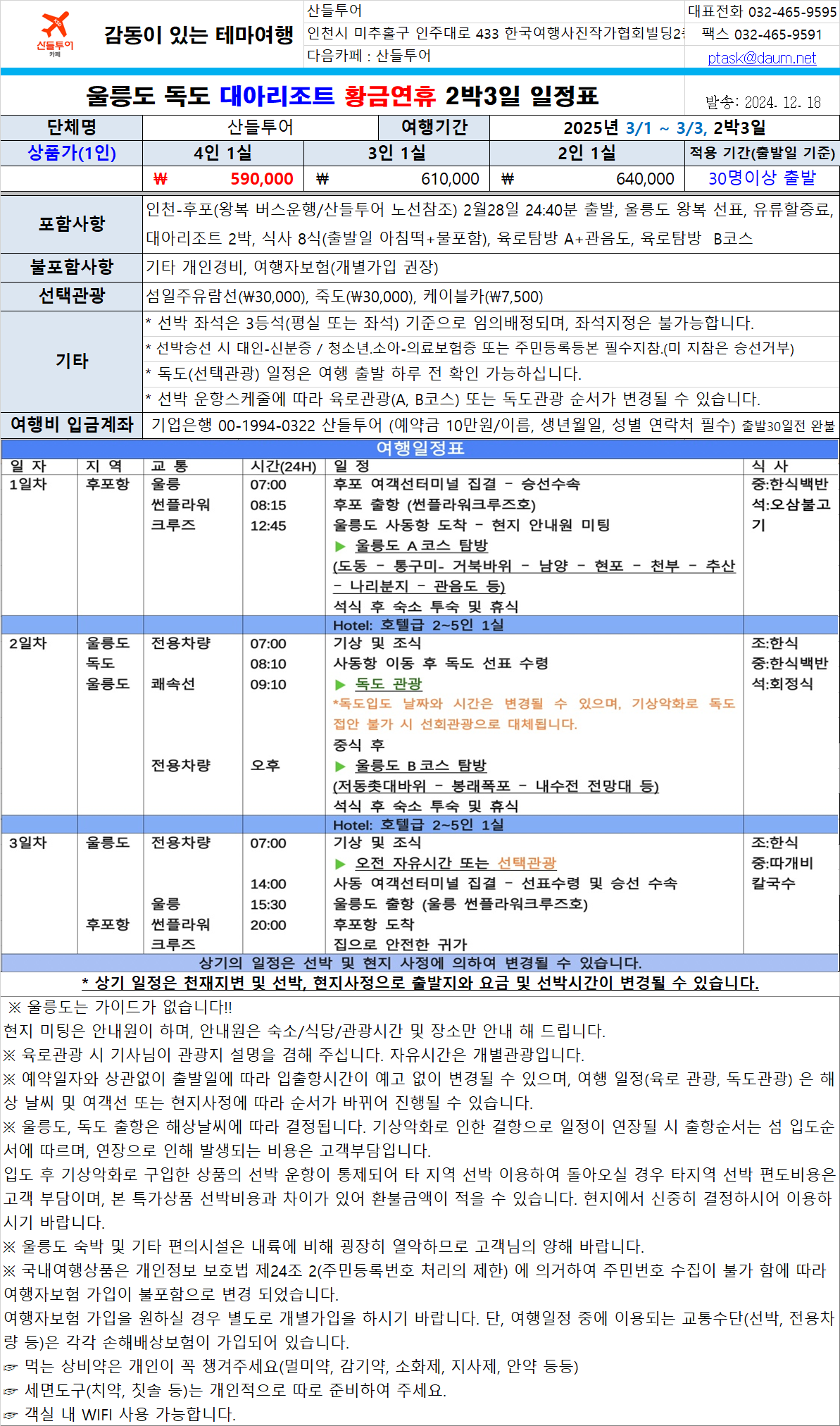 3월1일(토) 황금연휴 울릉도 독도 대아리조트 2박3일(특별이벤트)