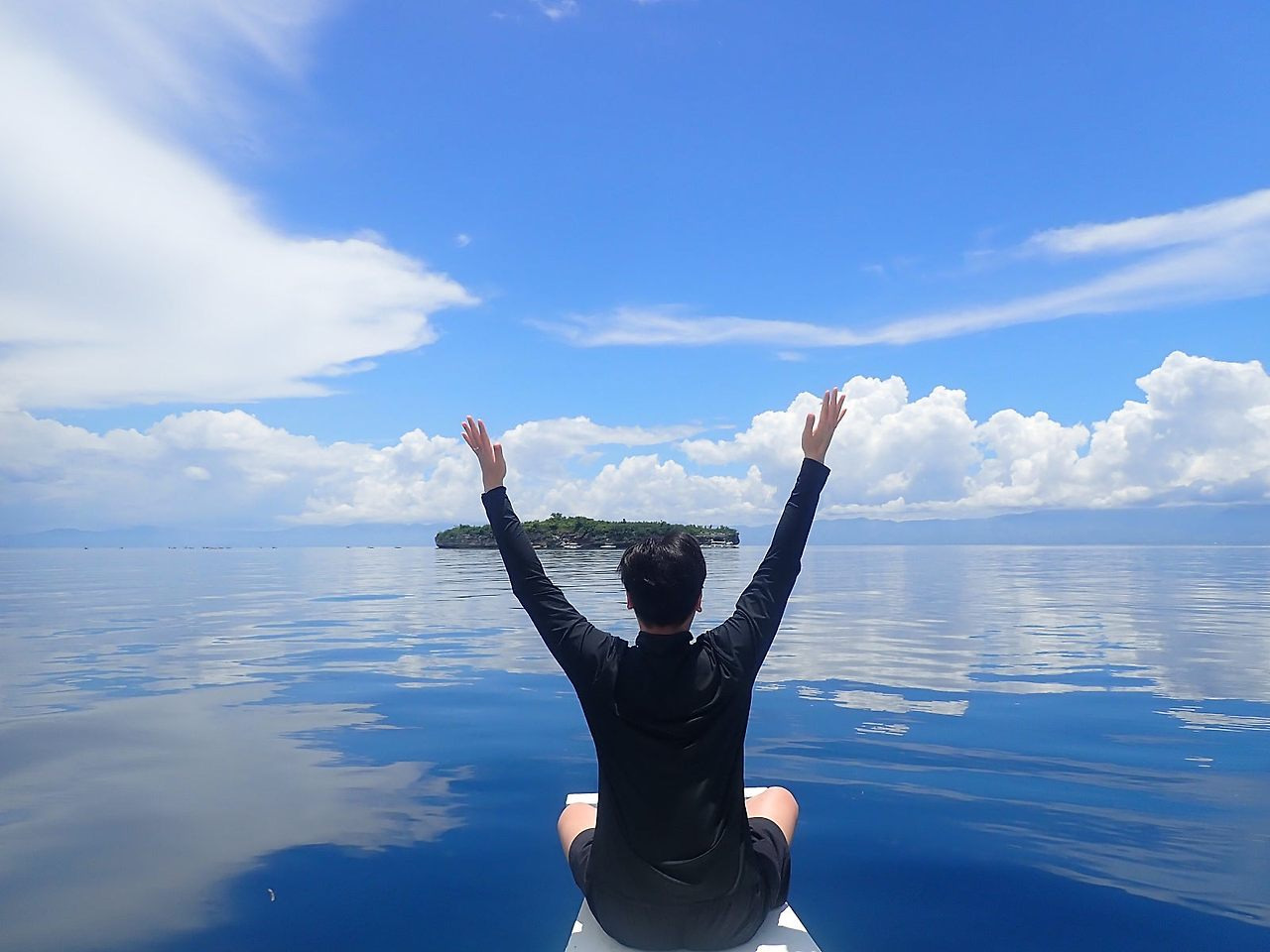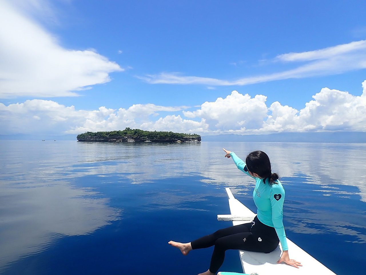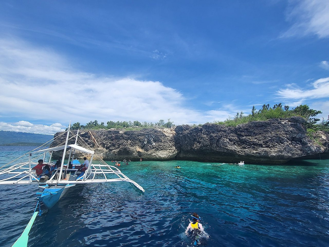 모알보알 앞바다에서 20~30분 이동하면, 페스카도르라는 돌섬이 있는데요. 날씨가 좋은 날은 위 사진처럼 촬영이 가능하답니다. 돌섬이기에 섬에 들어가지는 않고 청정구역으로 지정된 페스카도르섬 근처에서 스노쿨링을 진행합니다.