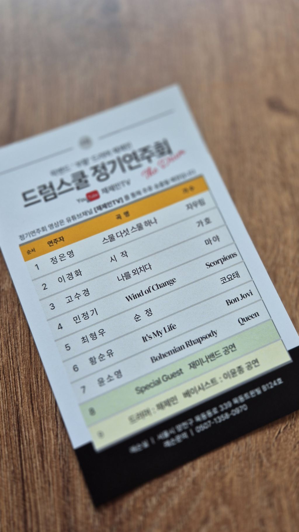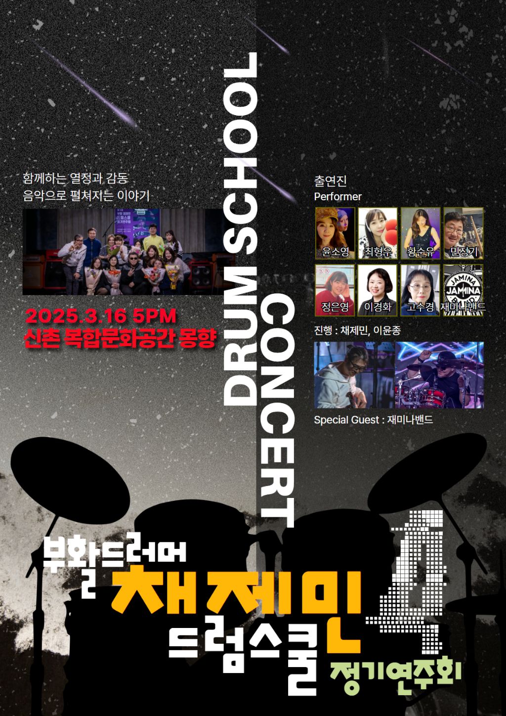 이번 정기연주회에는 드럼스쿨쪽 반장님인 소영님이 주도적으로 준비해서 저희는 그외적인 부분만을 도와드렸습니다.