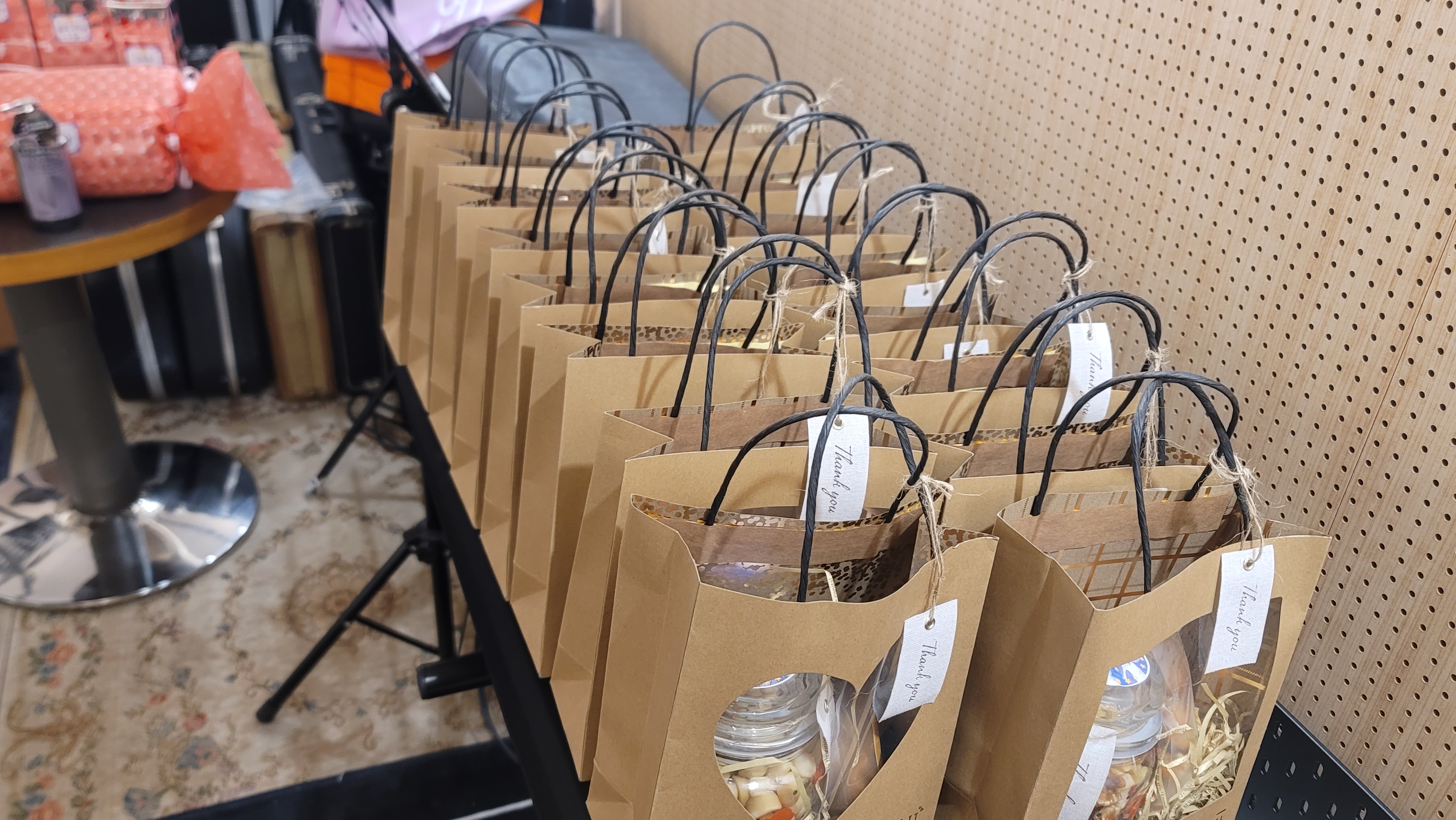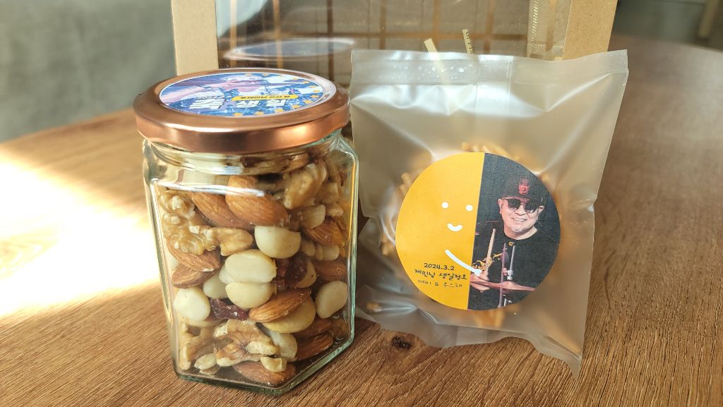 오신 분들께 답례품으로 견과류와 오란다세트를 만들어 드렸는데