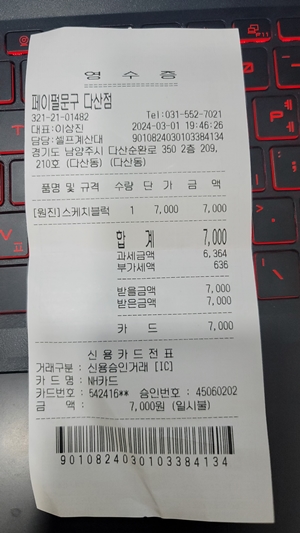 모자세탁과 책상예비비는 임시로 상품권을 만들어 드렸어요ㅎ