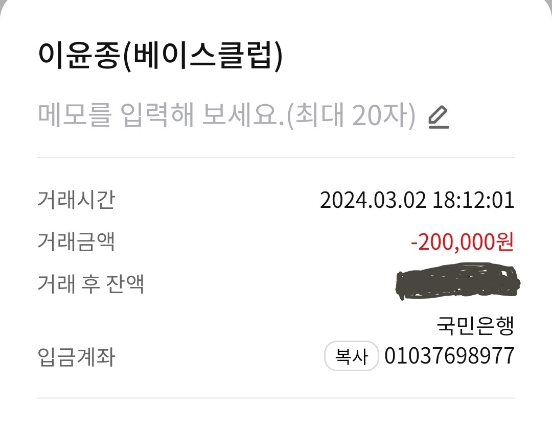실 지급된 의류와 키홀더, 부대비용들을 제외한 잔액은 부드채통장으로