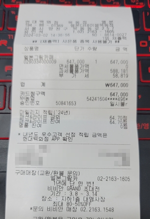 선물내역 사진에는 모자세탁권 20만원과 가구교환권 50만원으로