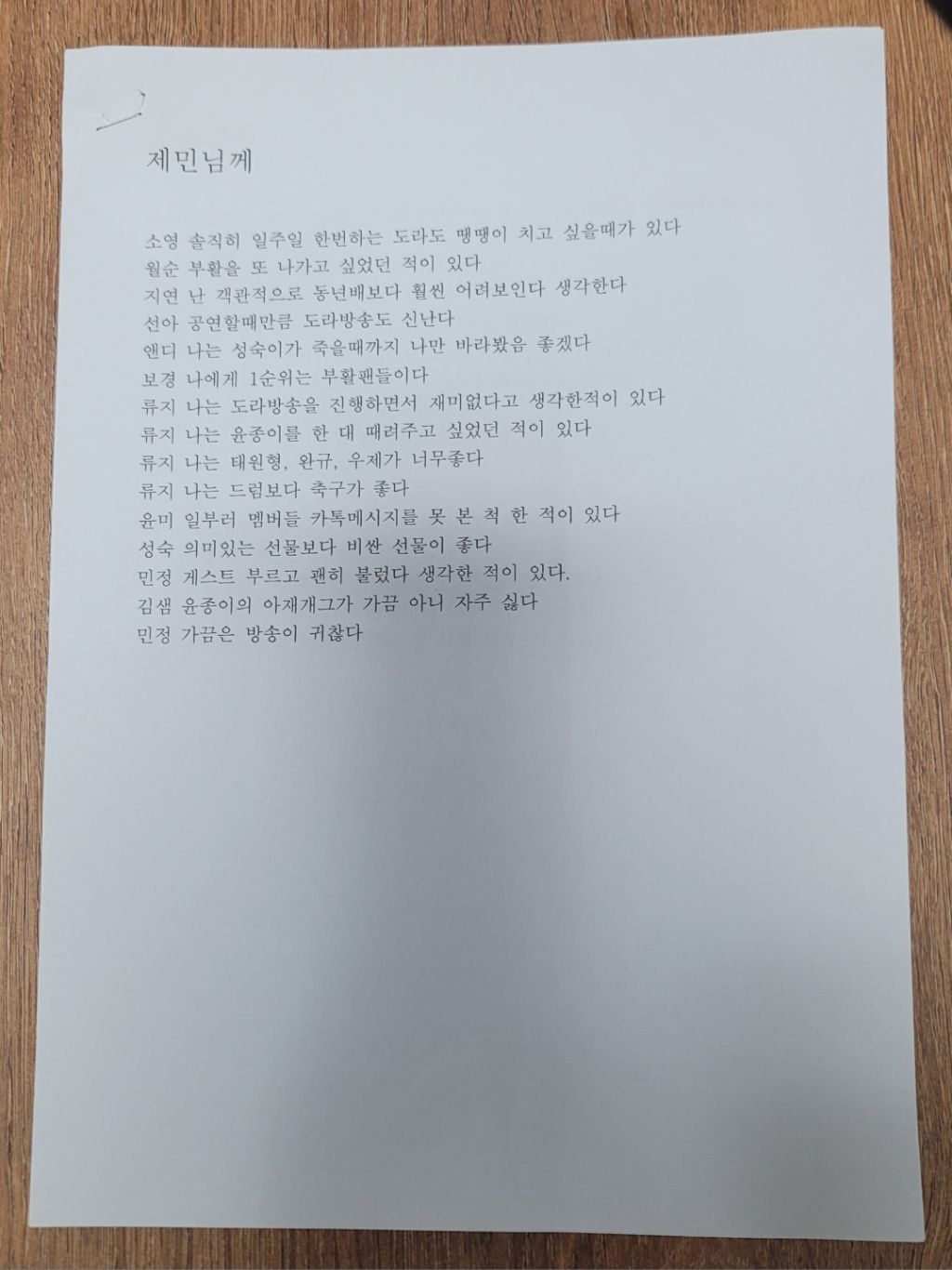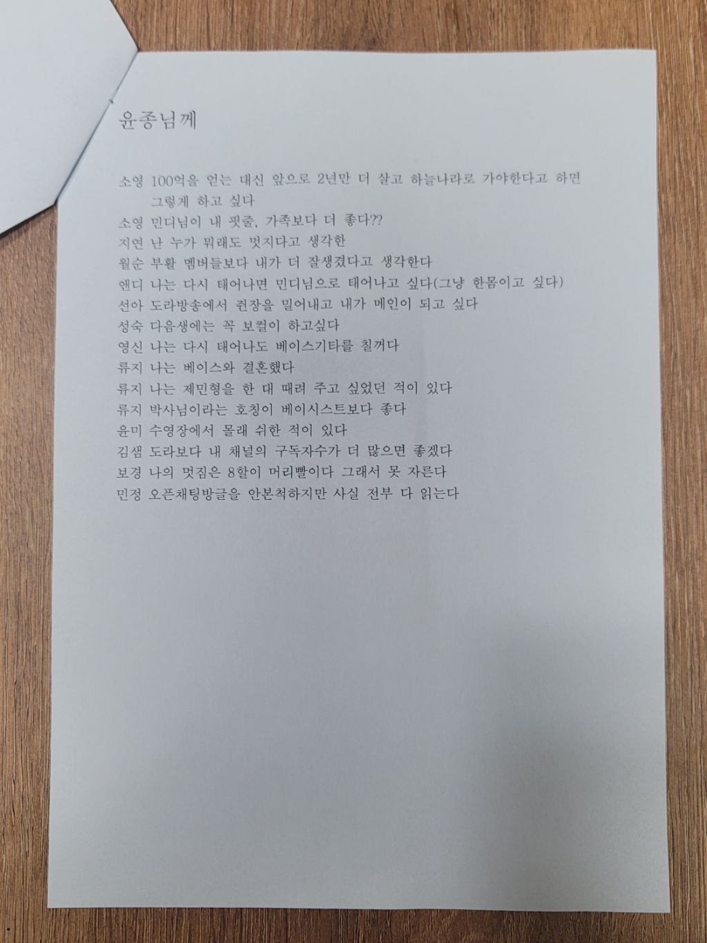 써서 제출했던 것을 뽑아 얼마나 참되고 진실된 분들이신 가를 알아보려고
