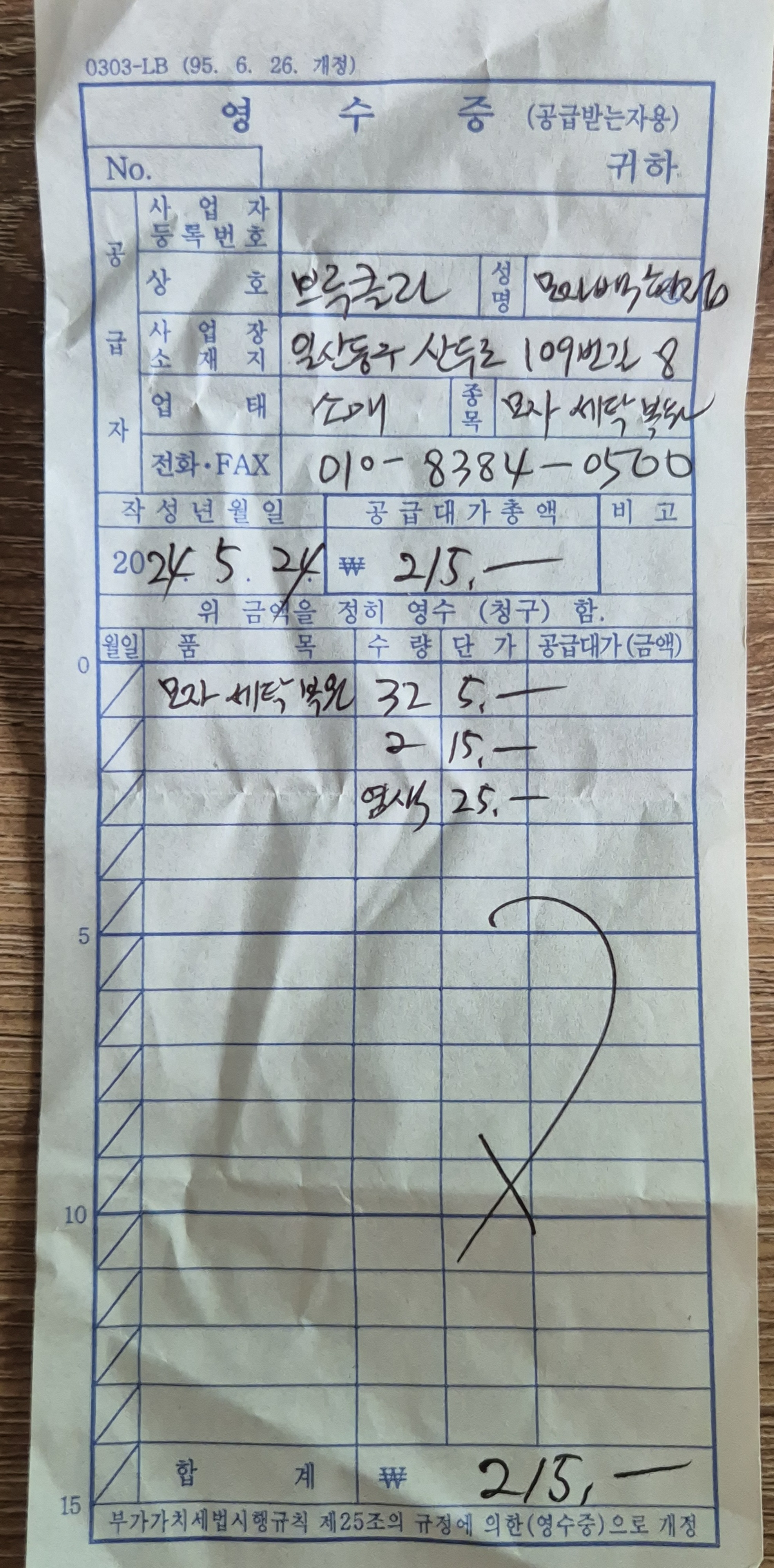 이월해 두도록 하겠습니다. <내용수정 : 모자세탁 - 2024.5.24 지출 215,000원>