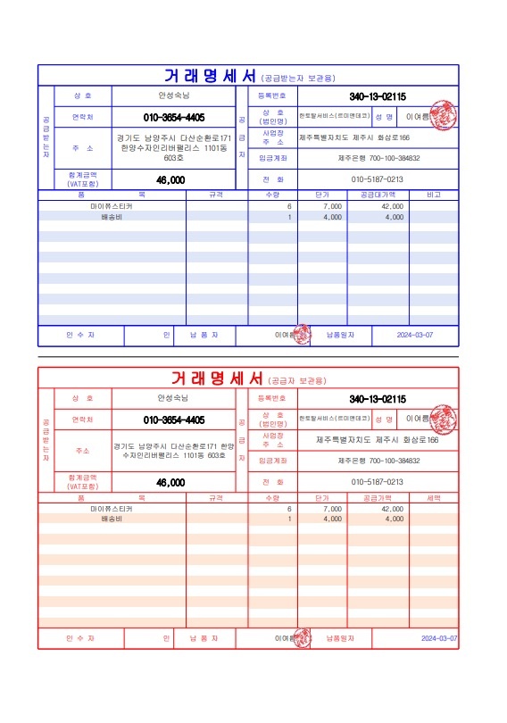작으나마 필요하신 준비를 해드렸는데 정산 내용 올려드립니다.
